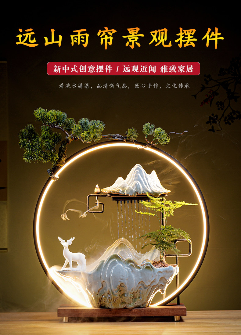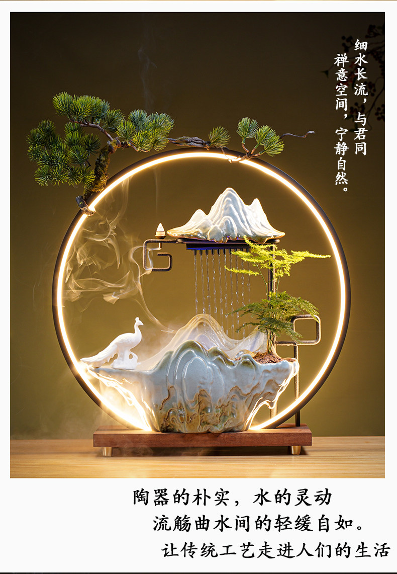 새로운 중국 선 순환 물 행운의 장식 사무실 거실 데스크탑 입구 분무 가습 빛 고급 선물스토어 가기