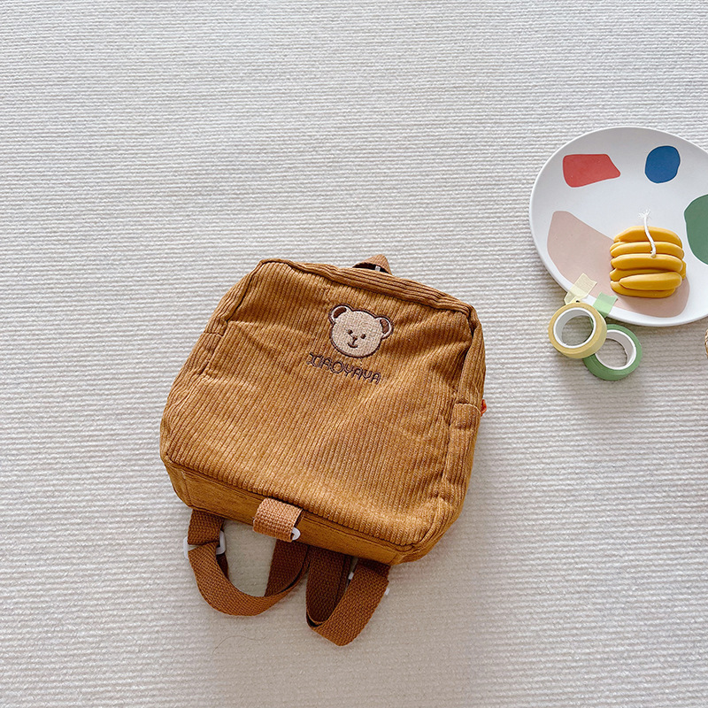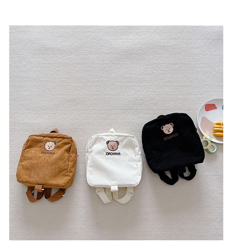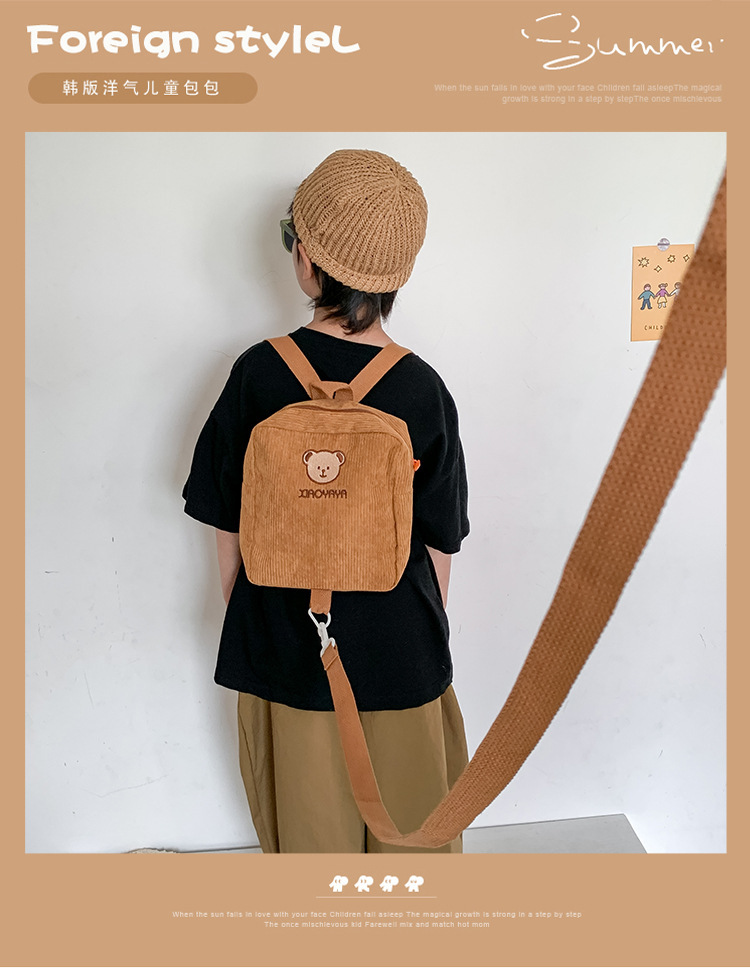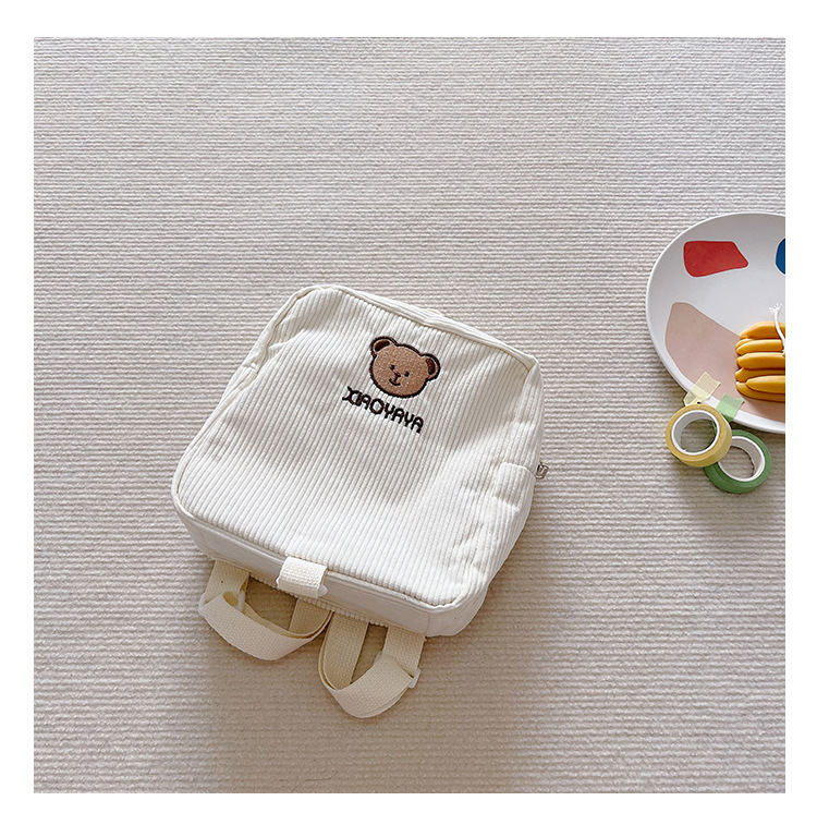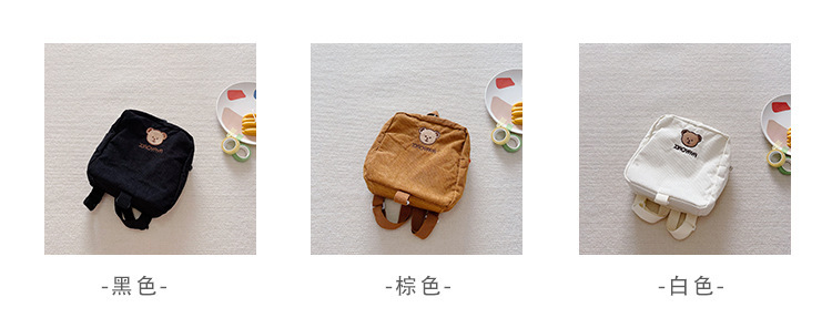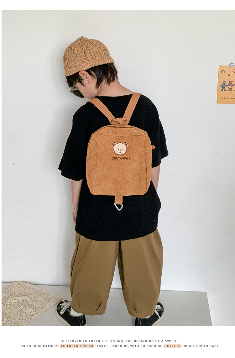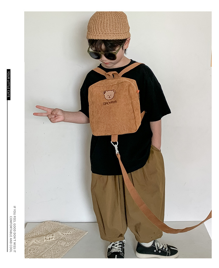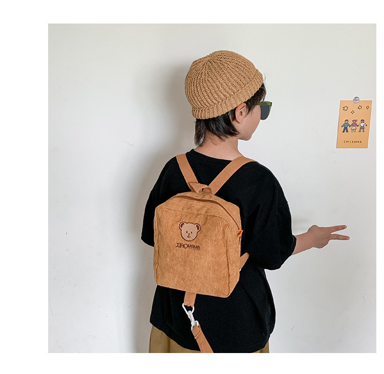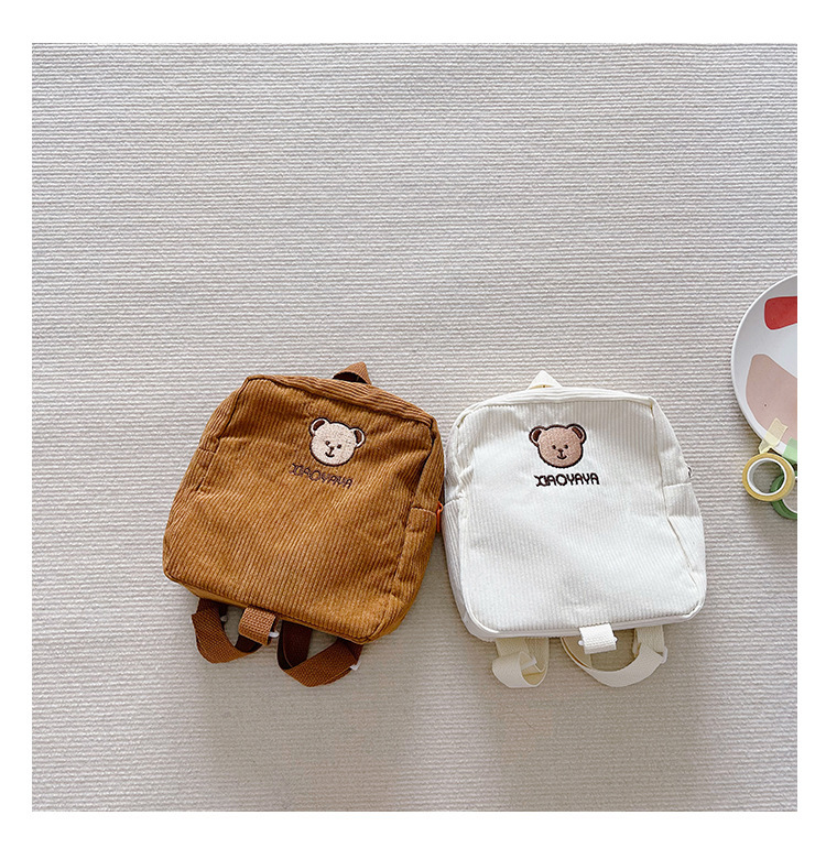 한국 자수 곰 어린이 배낭 유치원 경량 드롭 오프 코듀로이 아기의 분실 방지 배낭