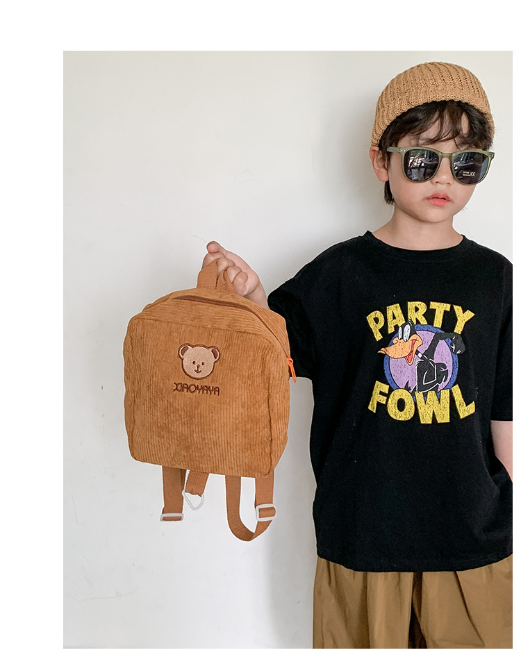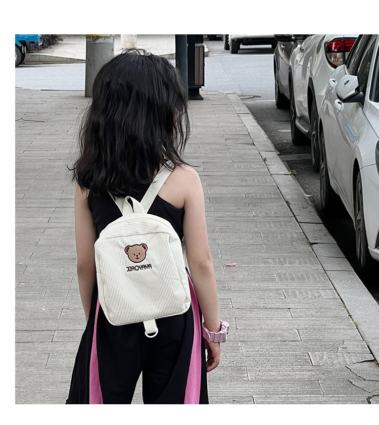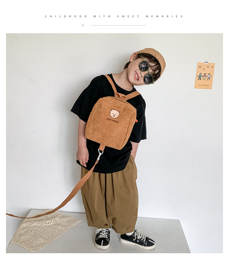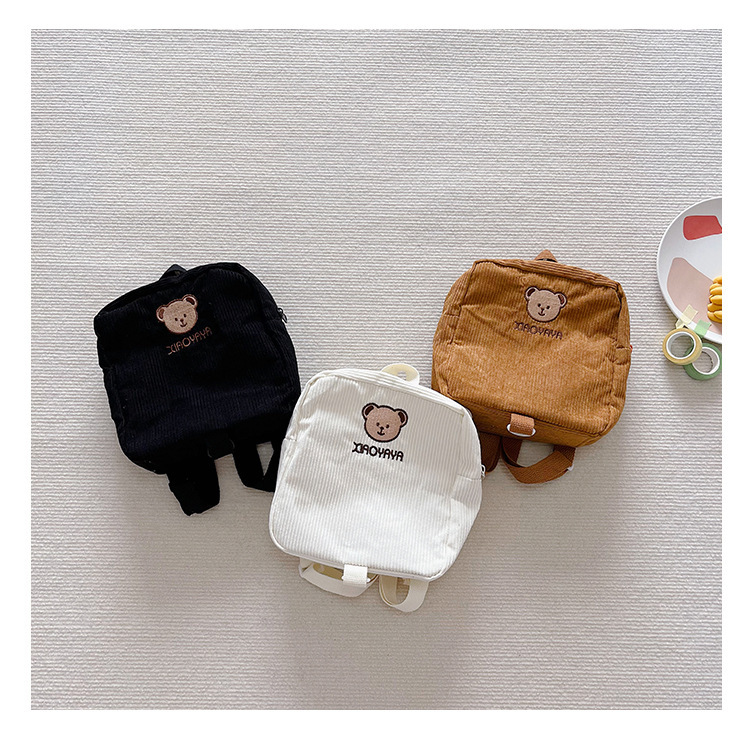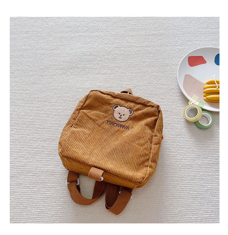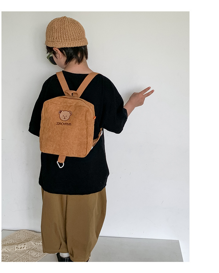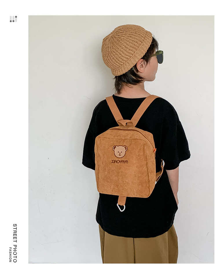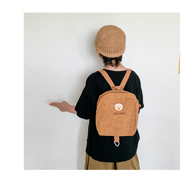 한국 자수 곰 어린이 배낭 유치원 경량 드롭 오프 코듀로이 아기의 분실 방지 배낭