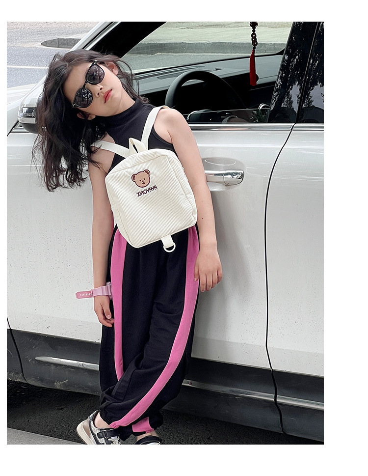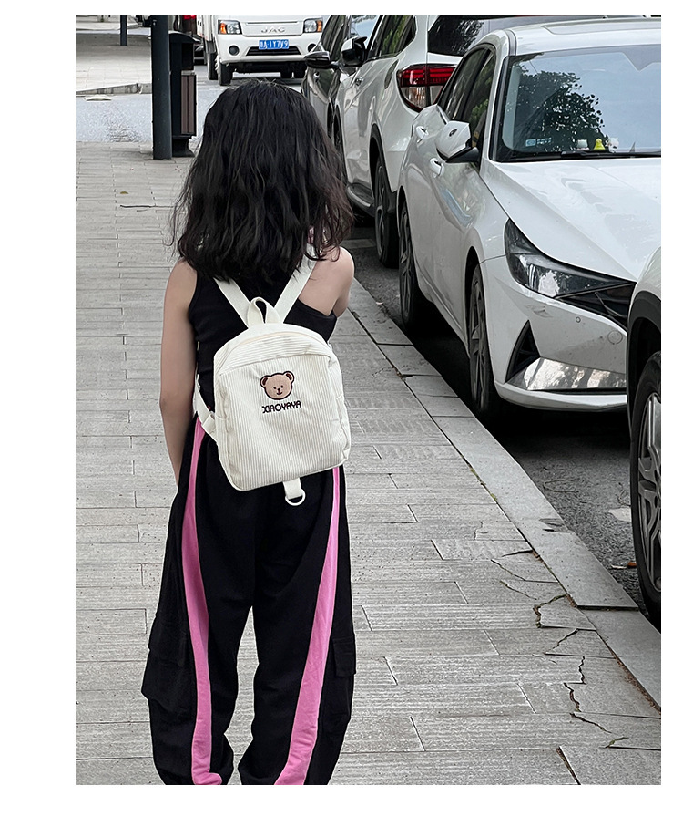 儿童包2023新款韩版刺绣小熊迷你双肩包宝宝婴儿防走失条绒小背包