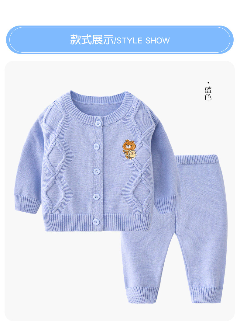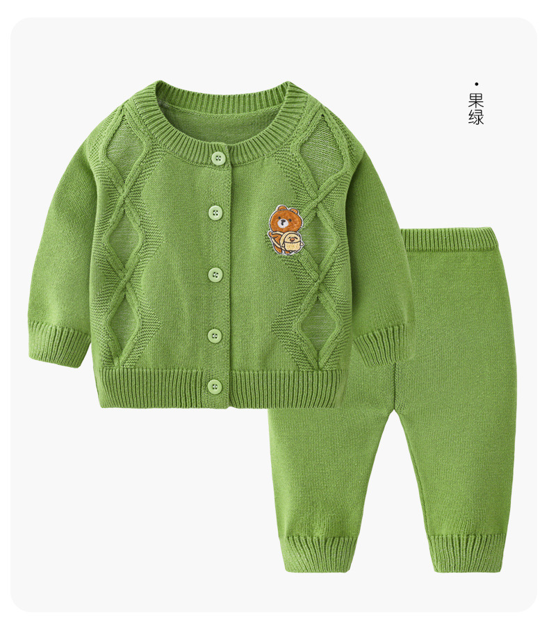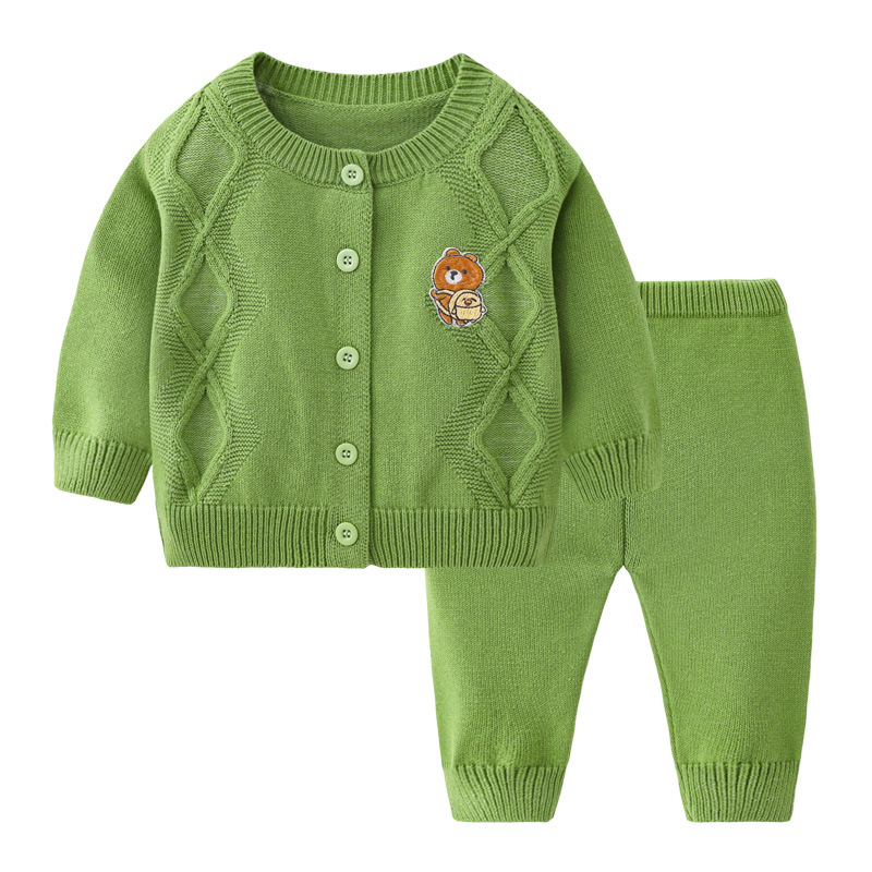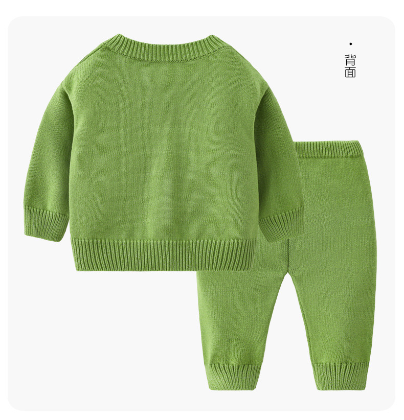 봄과 가을 아기 단색 어린이 캐주얼 카디건 스웨터 니트 세트 도매 아기 양모 니트 투피스 세트스토어 가기