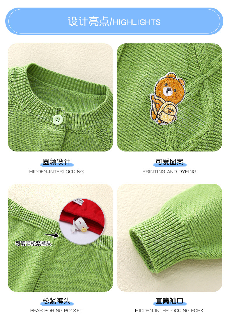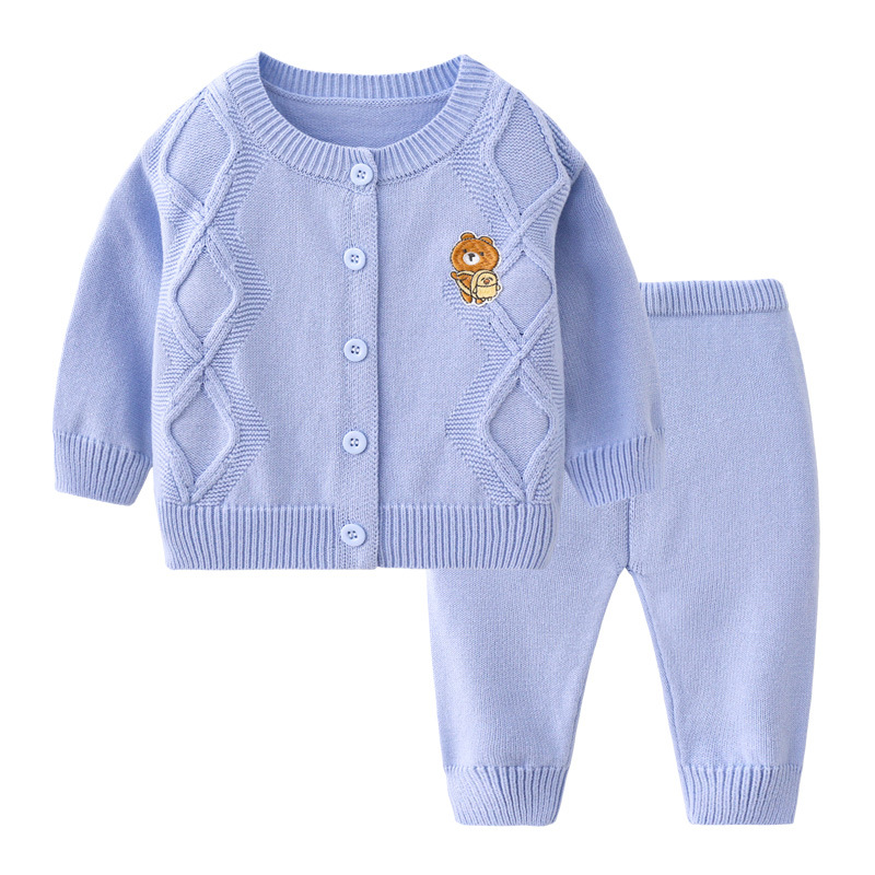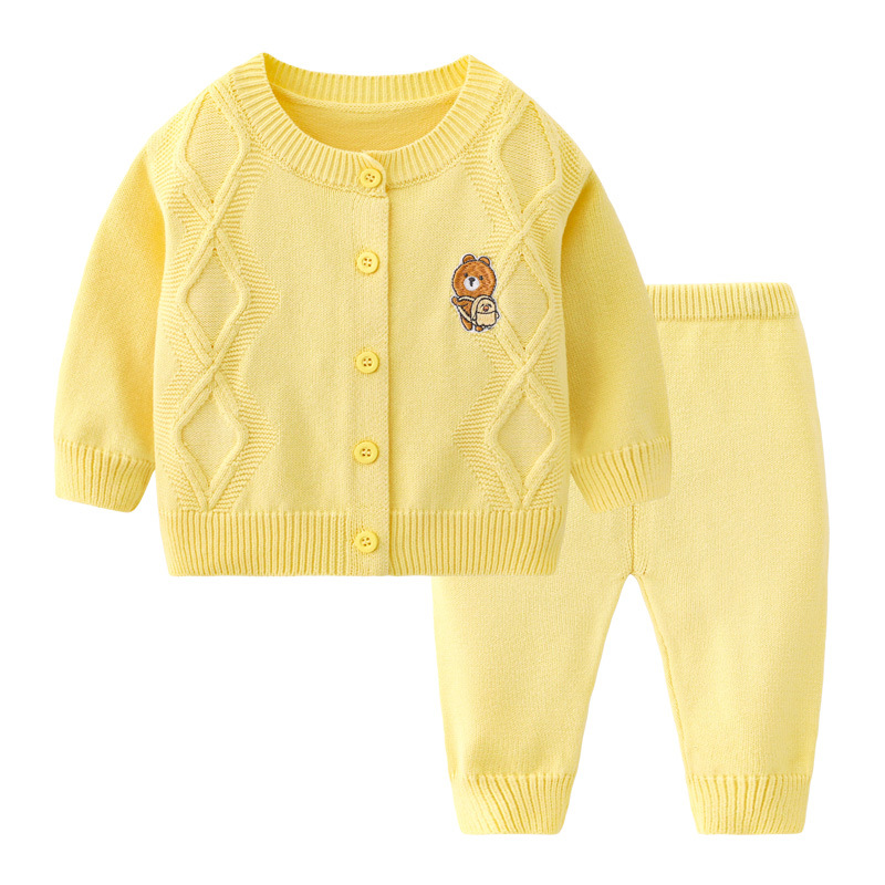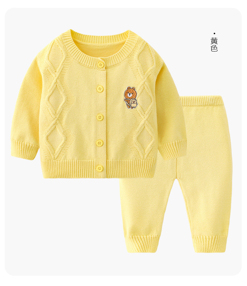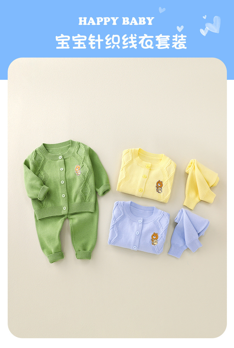 봄과 가을 아기 단색 어린이 캐주얼 카디건 스웨터 니트 세트 도매 아기 양모 니트 투피스 세트스토어 가기