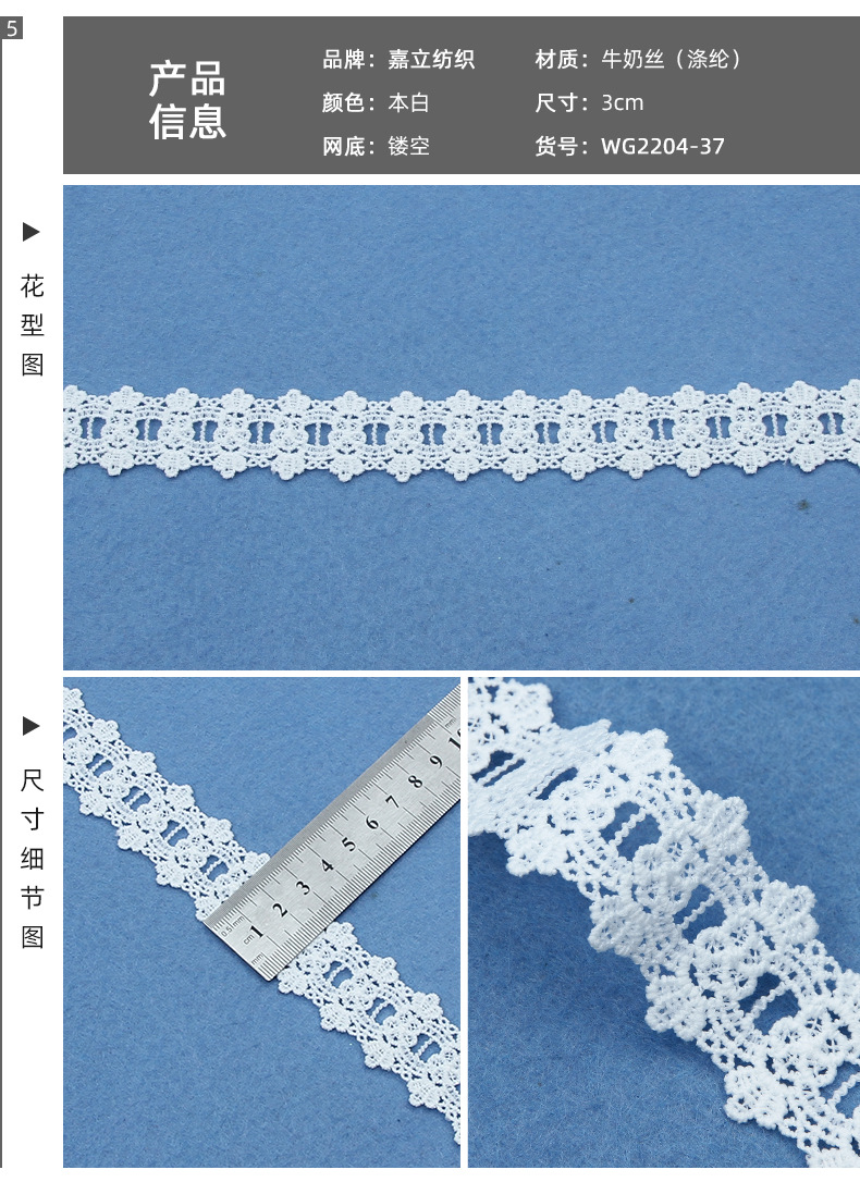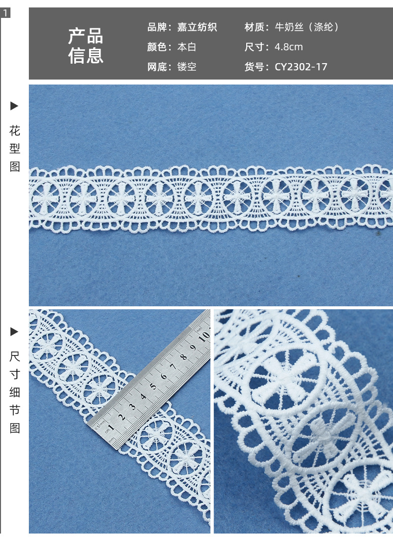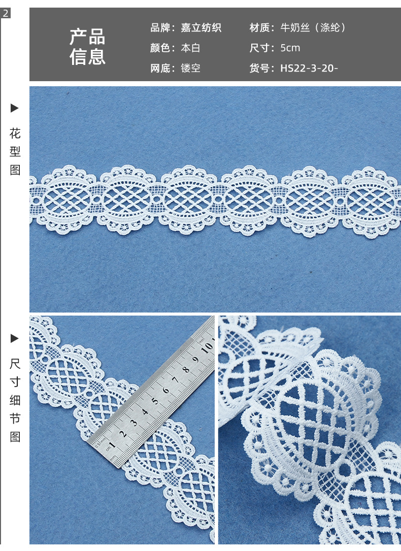공장 도매 중공 양자 웨이브 수용성 우유 실크 레이스 레이스 자수 바코드 로리타 여성 의류 액세서리스토어 가기