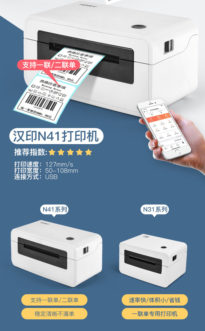 한인 프린터 N31/N41 택배 전자상거래용 범용 블루투스 연결 가능 소형 감열 프린터