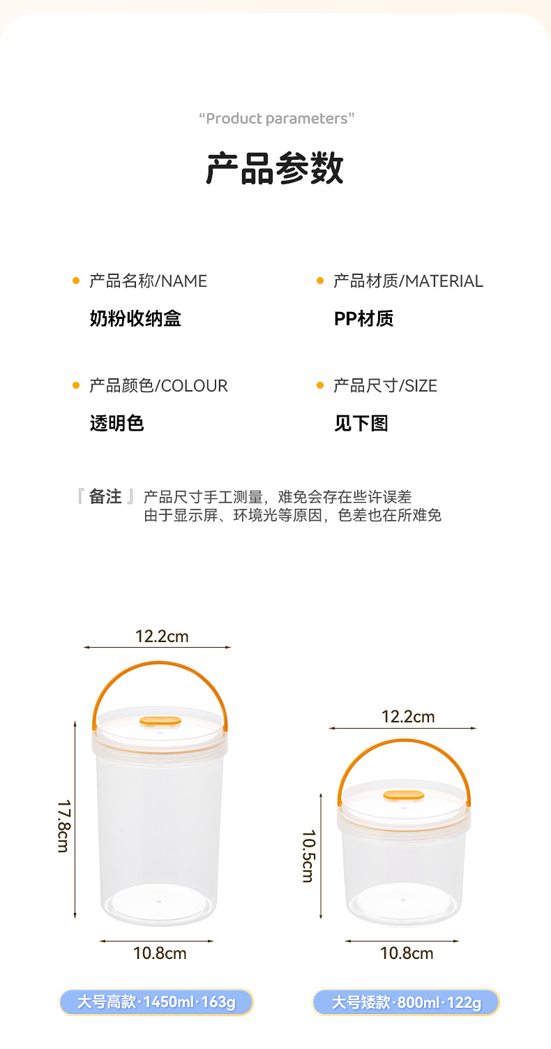 Pp 분유 상자 방습 휴대용 발신 식품 페트병 투명 밀폐 탱크 저장 탱크 저장 상자 분유 탱크