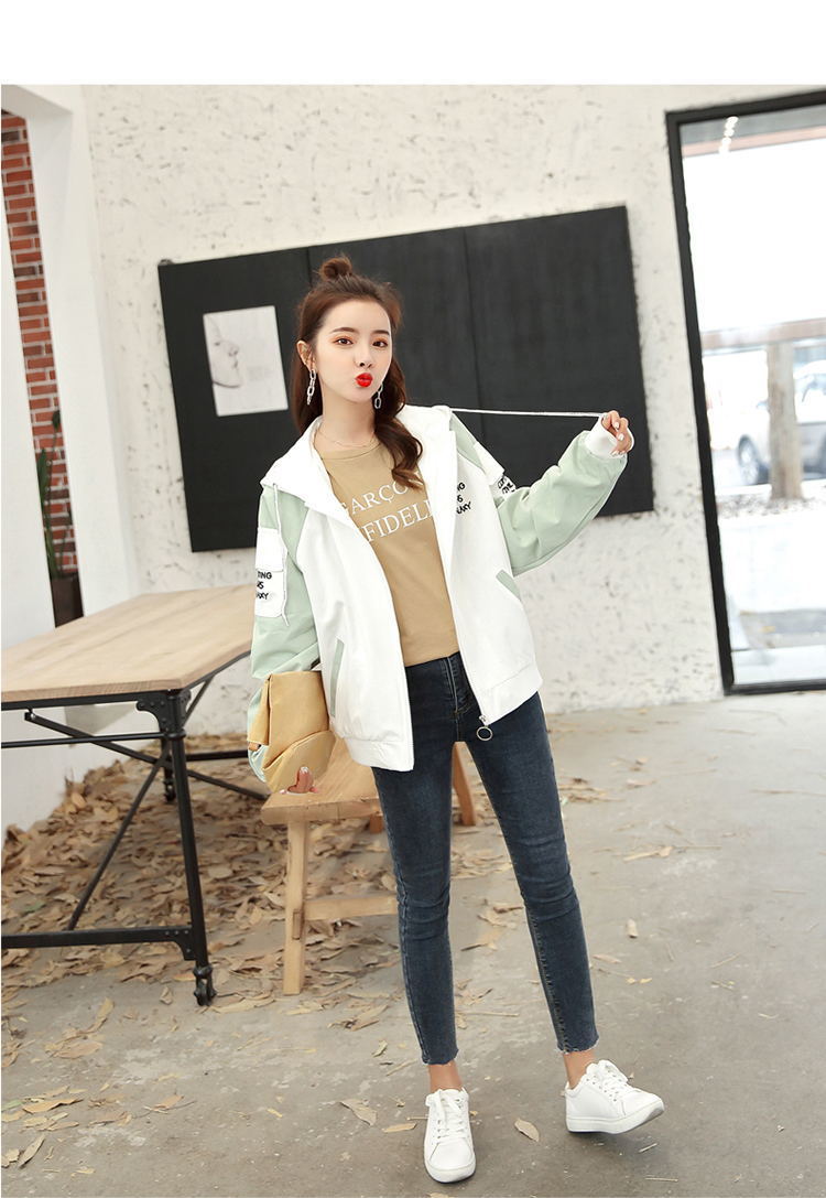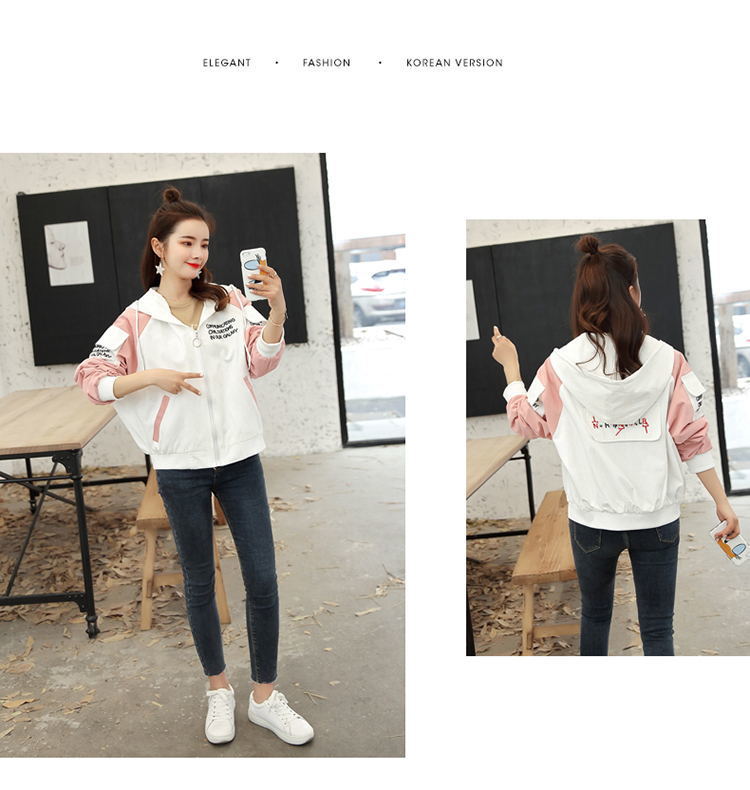 봄과 가을 새로운 한국 스타일 느슨한 학생 후드 컬러 매칭 프린트 재킷 여성 모든 매치 캐주얼 재킷 야구복 탑스토어 가기