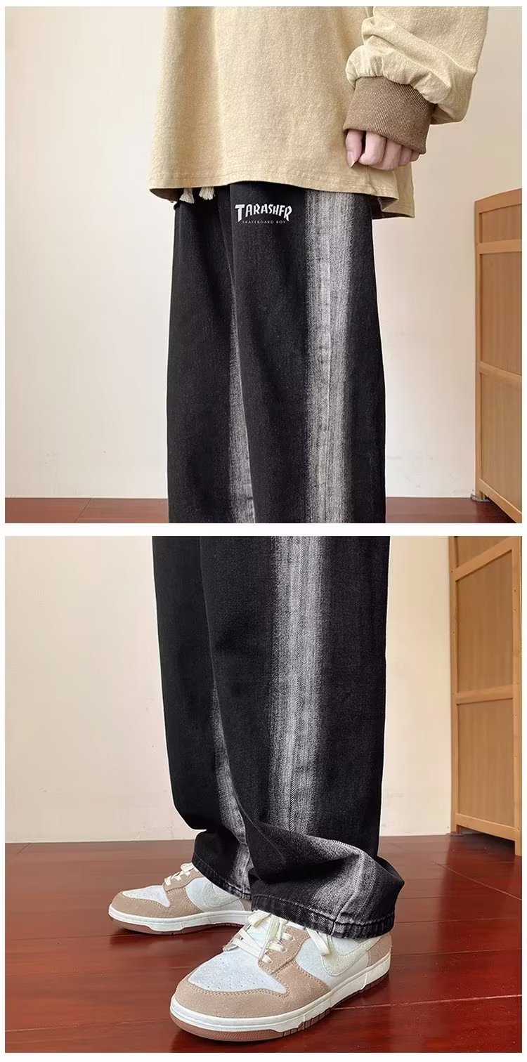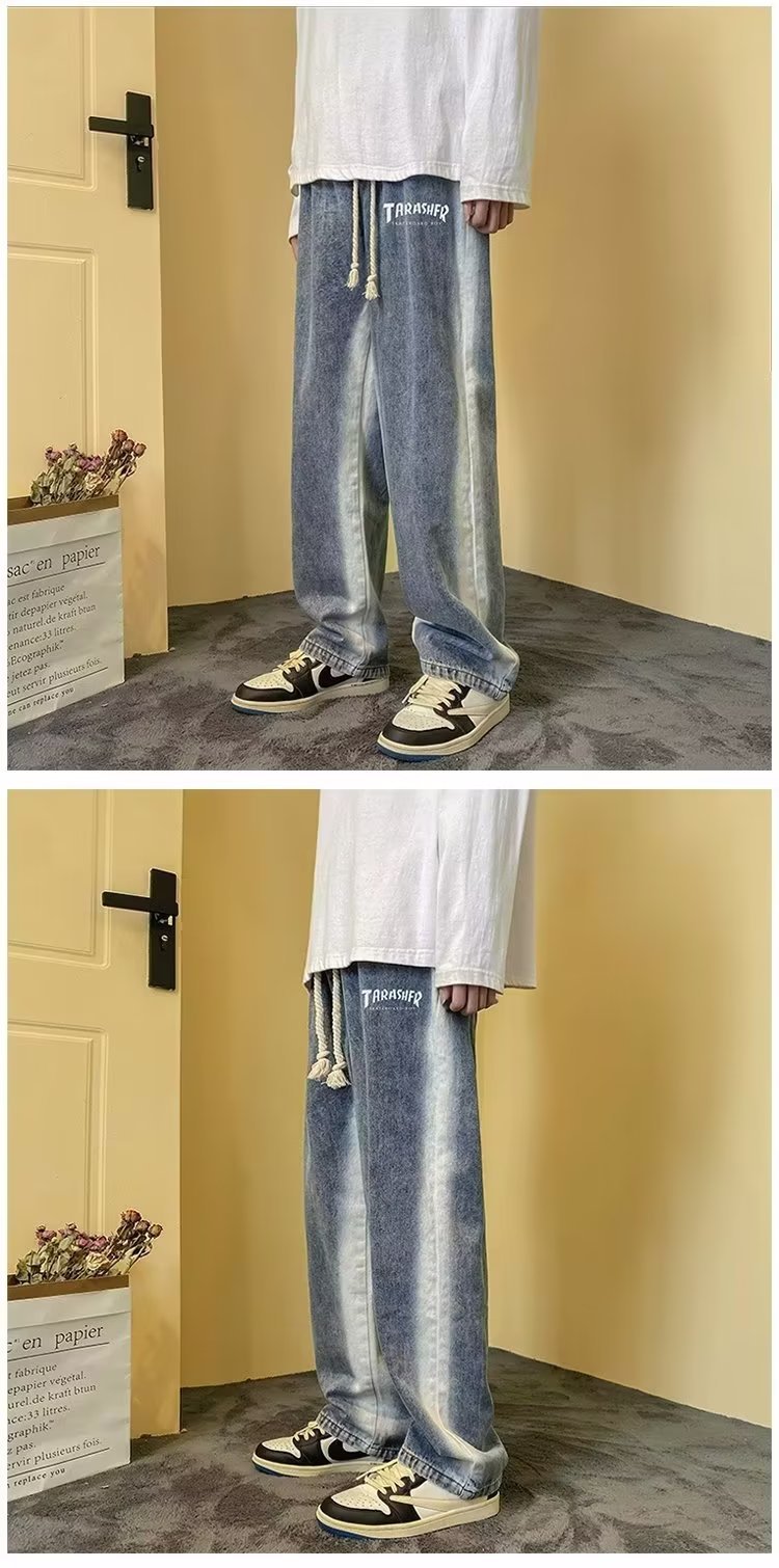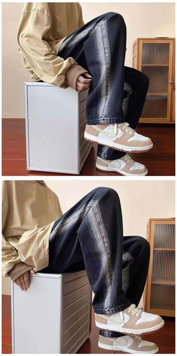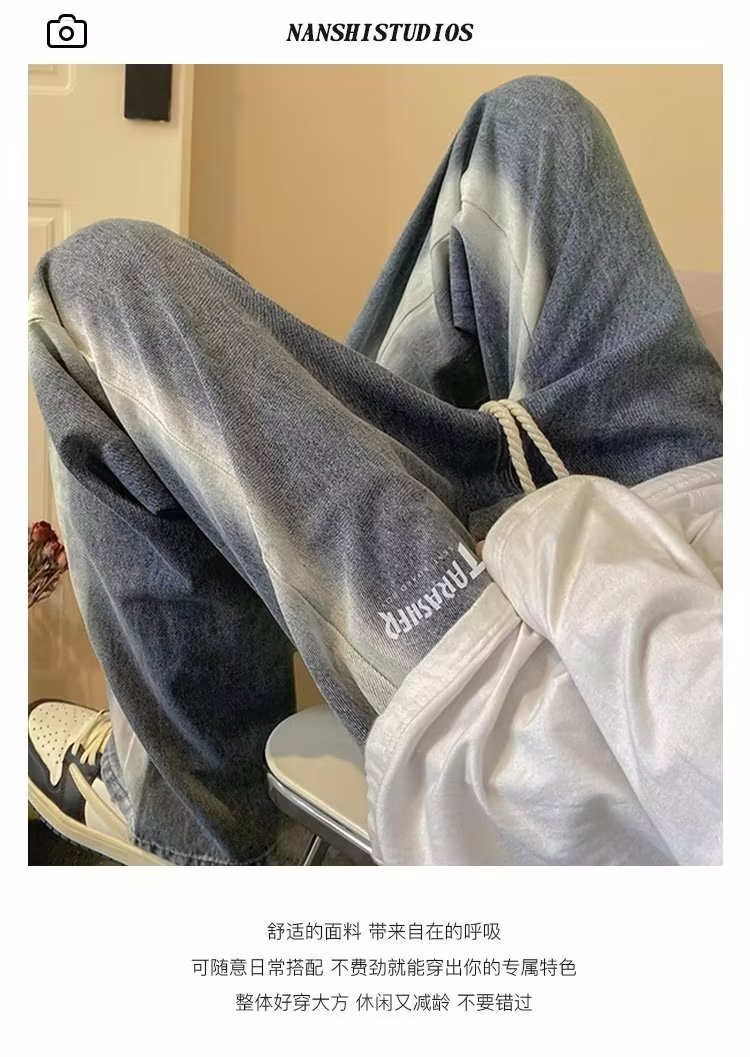 그라디언트 청바지 남자의 봄과 가을 새로운 모든 매치 느슨한 스트레이트 캐주얼 바지 세탁 올드 와이드 레그 아빠 바지스토어 가기