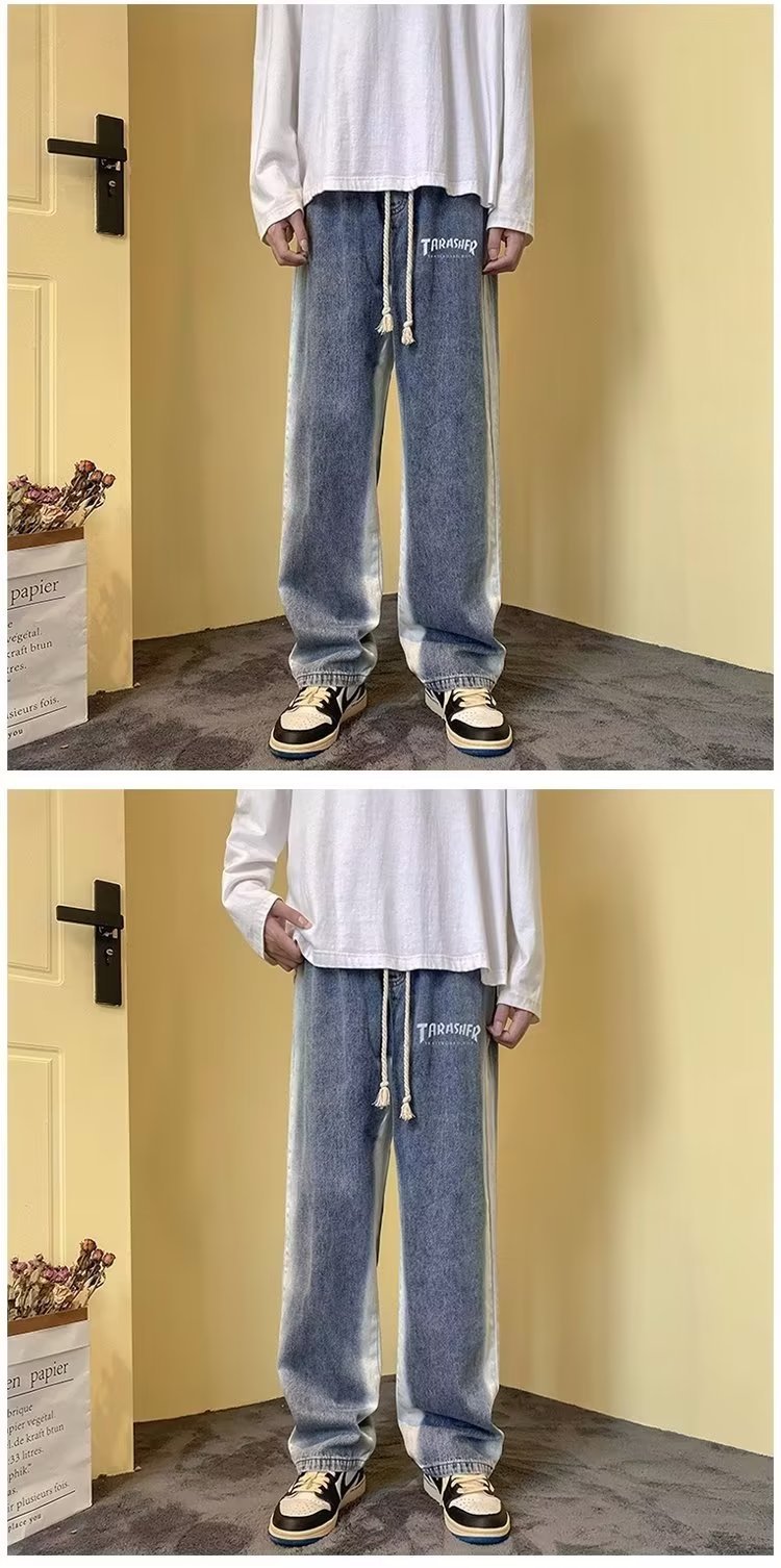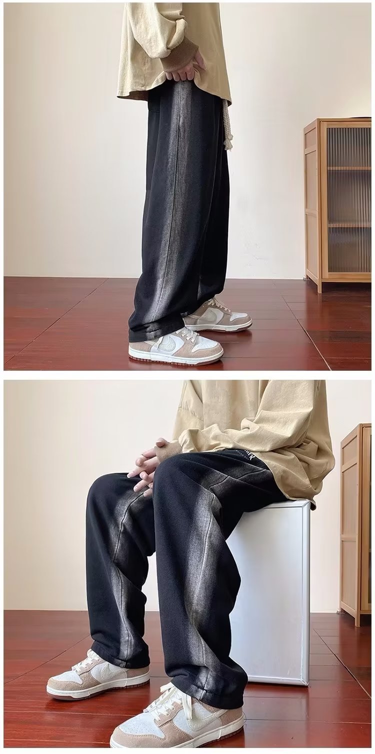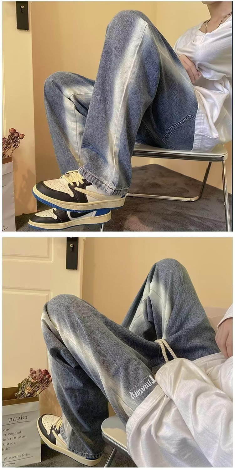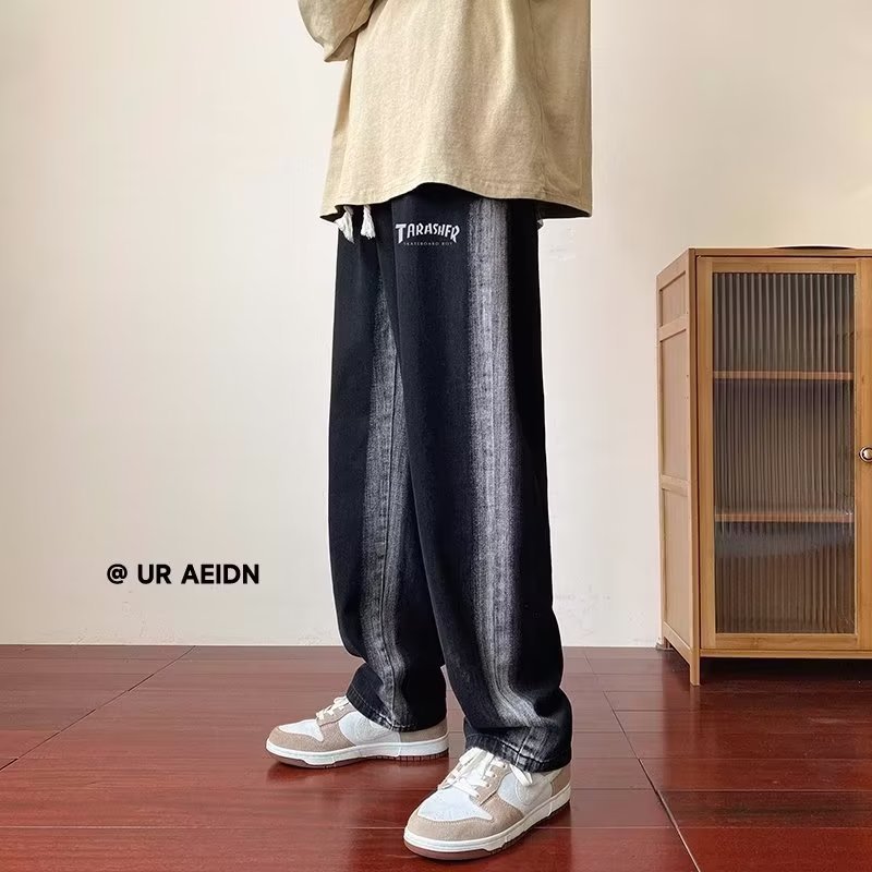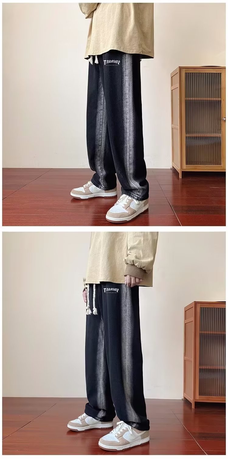 그라디언트 청바지 남자의 봄과 가을 새로운 모든 매치 느슨한 스트레이트 캐주얼 바지 세탁 올드 와이드 레그 아빠 바지스토어 가기