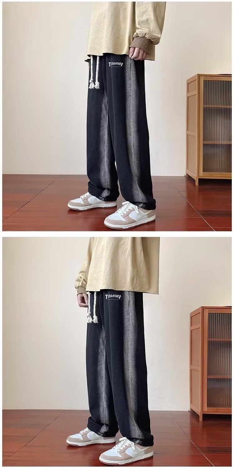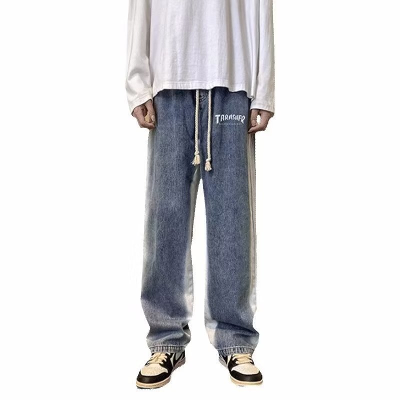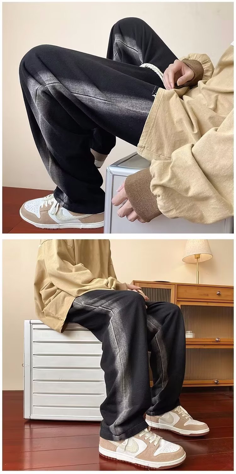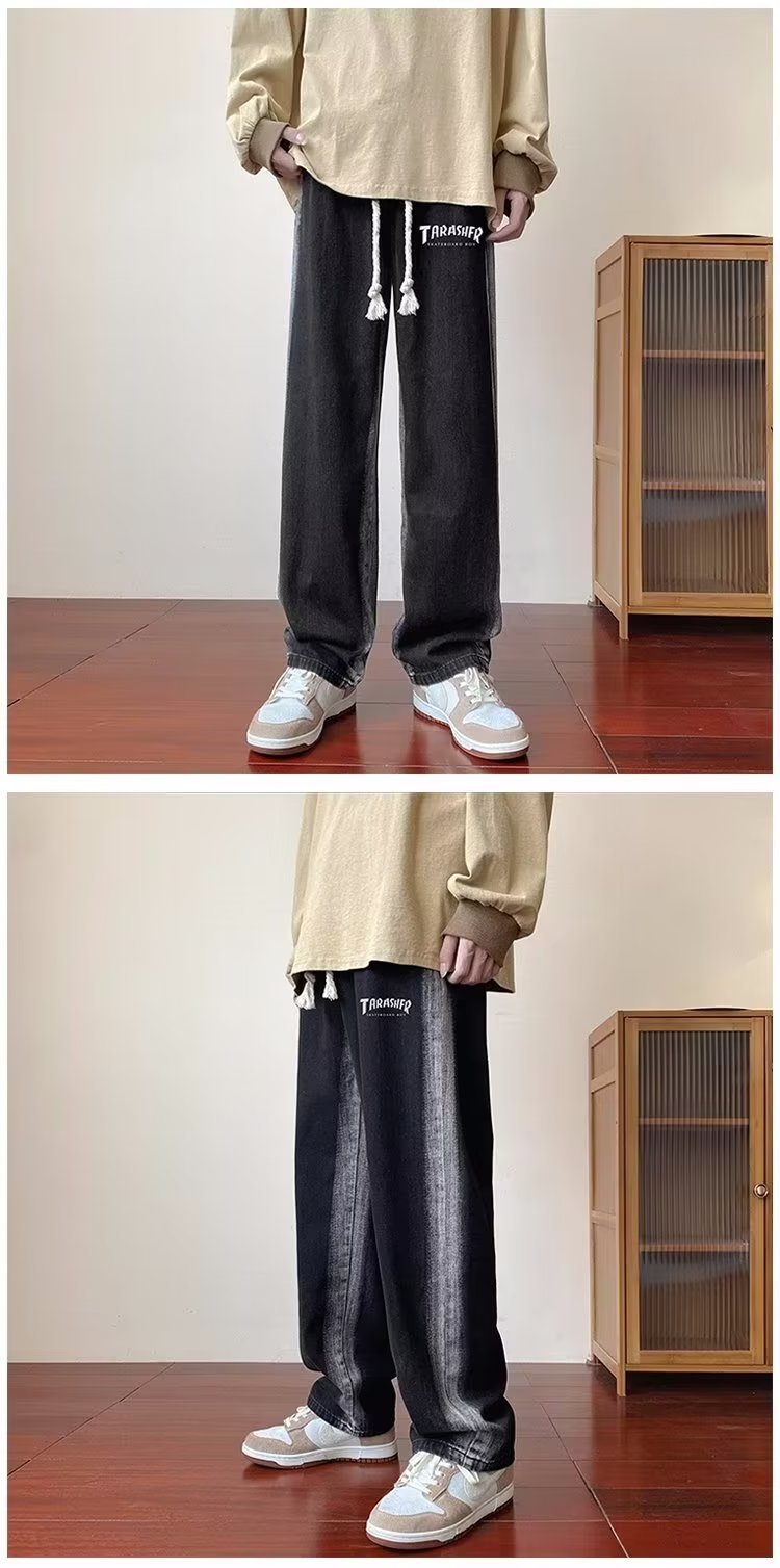 그라디언트 청바지 남자의 봄과 가을 새로운 모든 매치 느슨한 스트레이트 캐주얼 바지 세탁 올드 와이드 레그 아빠 바지스토어 가기
