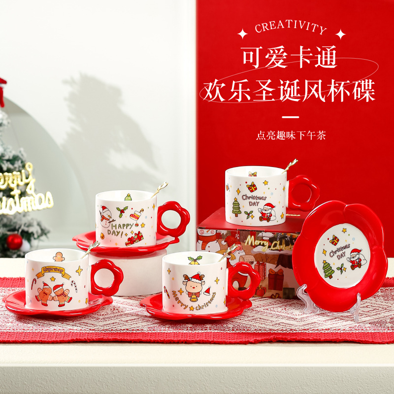 | 品名:欢乐圣诞风杯碟 | 配套:杯子+碟子+勺子 |