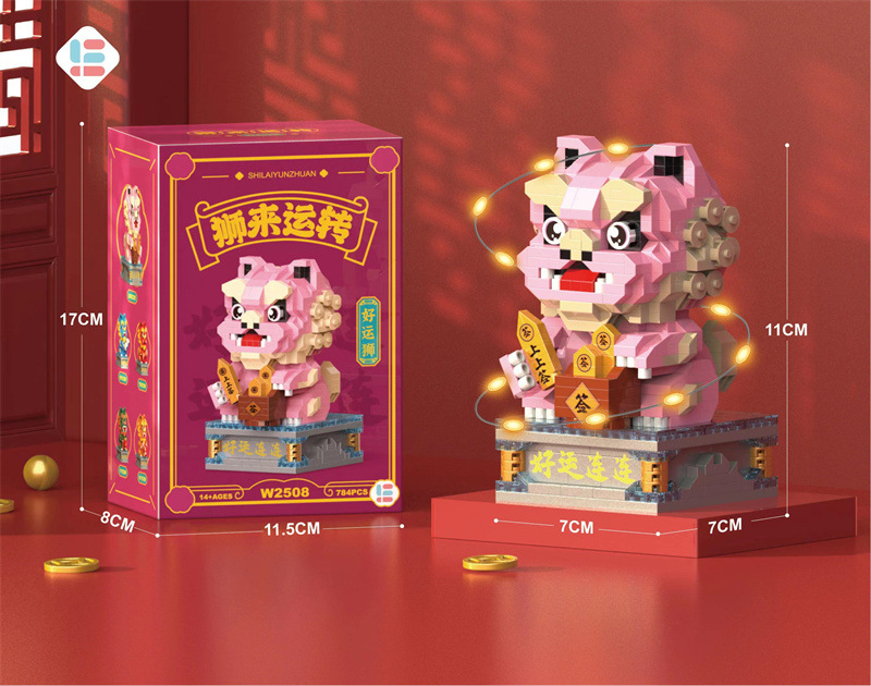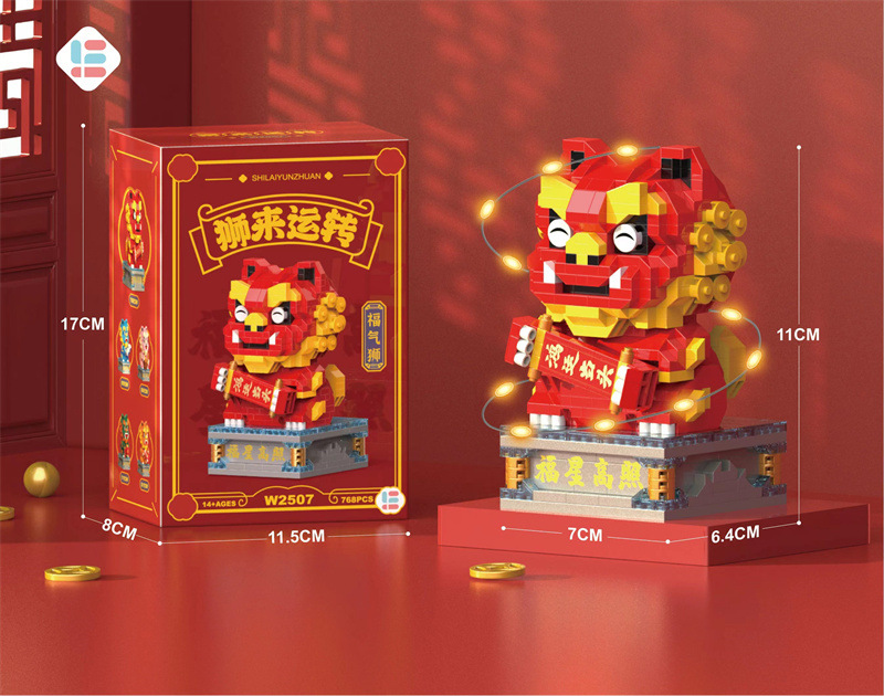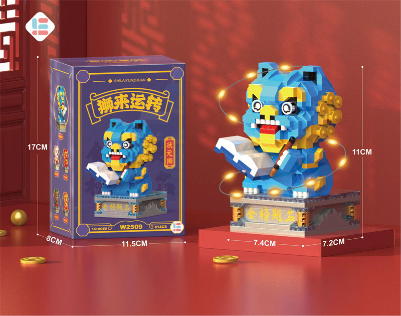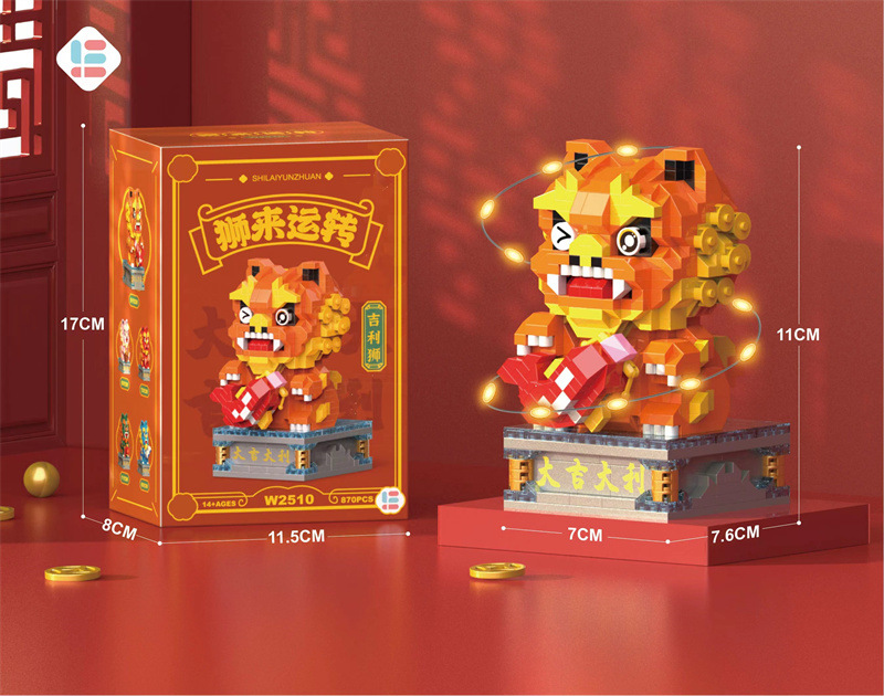 사자 실행 사자 댄스 교육 어린이 조립 작은 입자 빌딩 블록 장난감 새해 학생 선물 도매