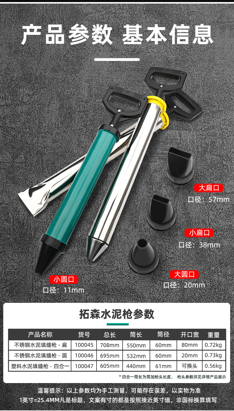 Tuosen 스테인레스 스틸 시멘트 건 라운드 플랫 노즐 그라우터 사이트 시멘트 플러그 솔기 필러 모르타르 시멘트 코킹 건