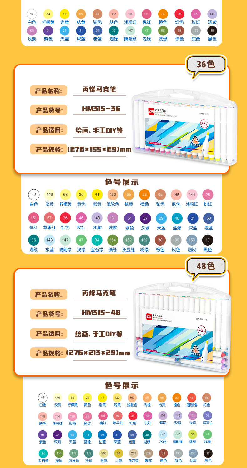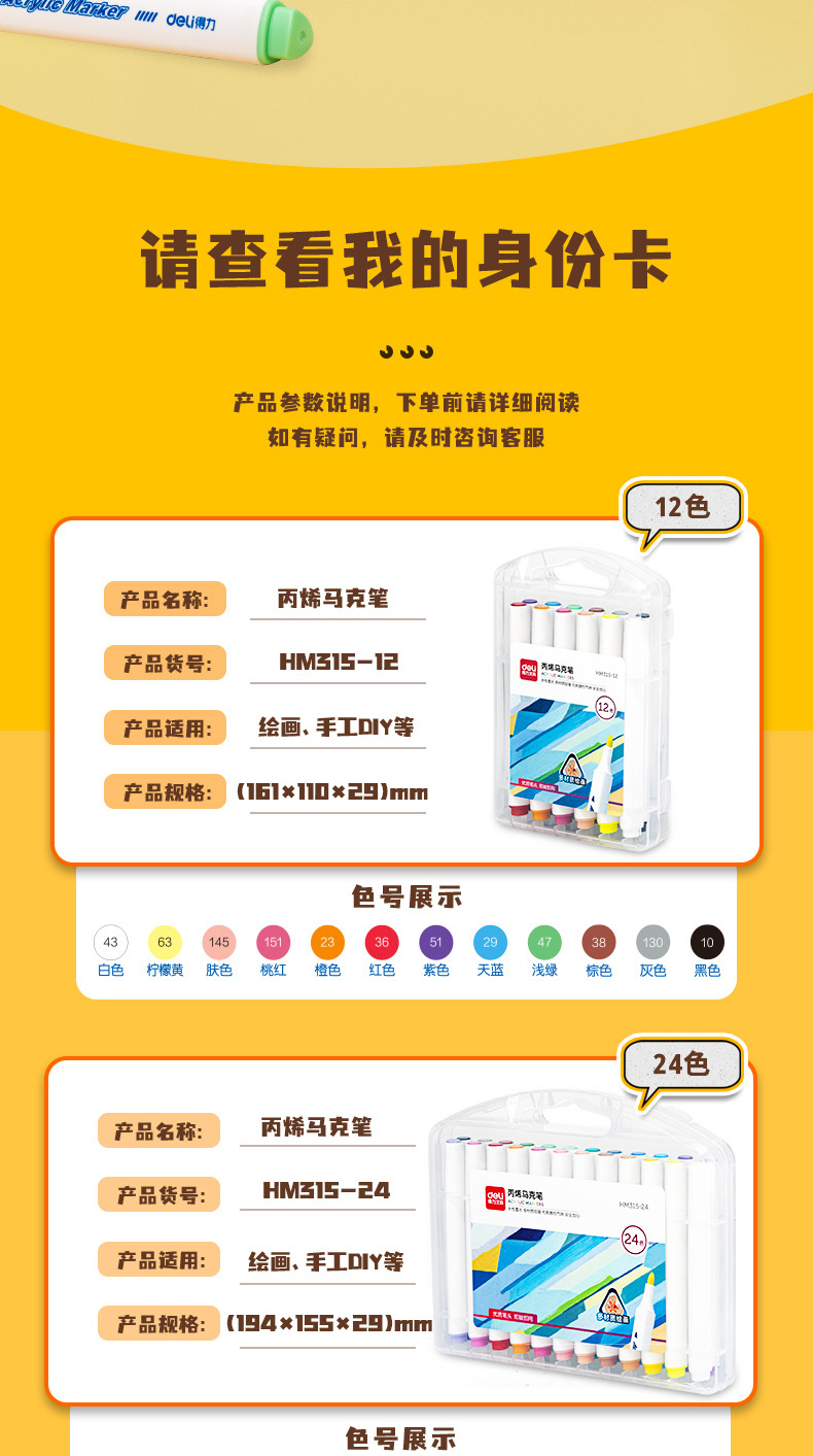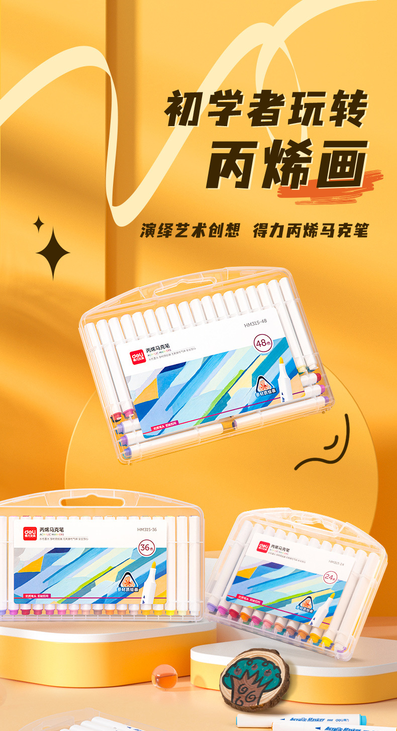 델리 HM315 수성 아크릴 마커 PP 박스 방수 손으로 그린 DIY 어린이 아크릴 안료 낙서 펜스토어 가기