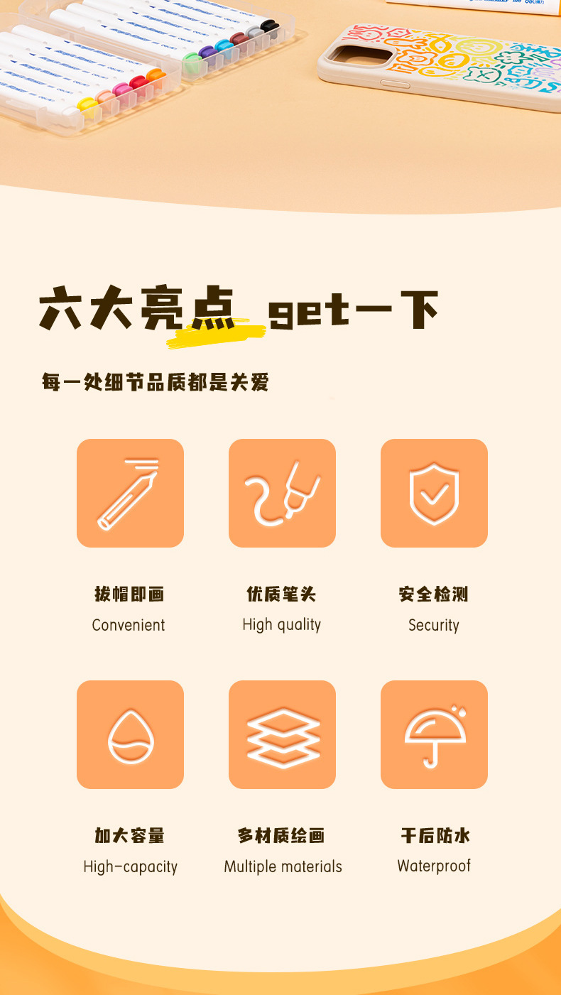 델리 HM315 수성 아크릴 마커 PP 박스 방수 손으로 그린 DIY 어린이 아크릴 안료 낙서 펜