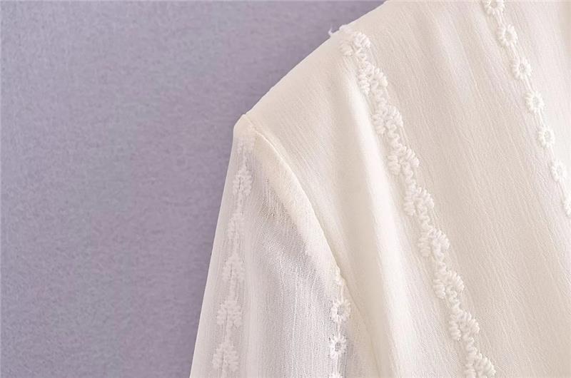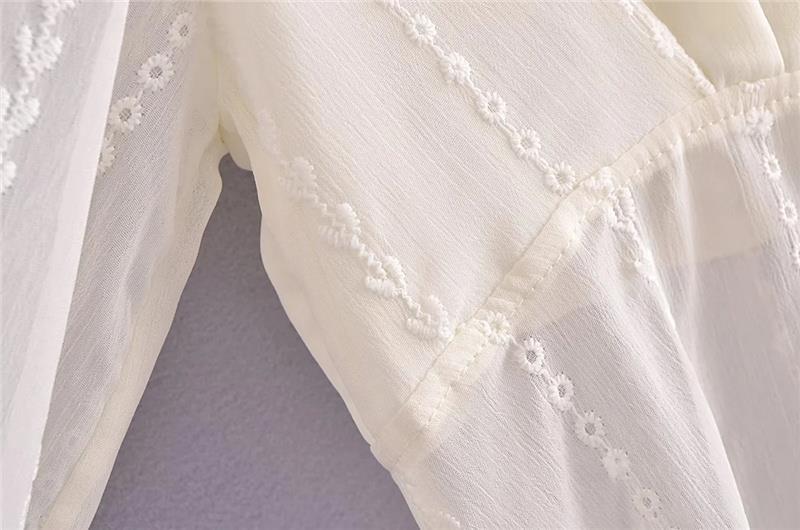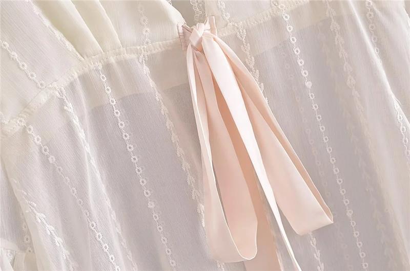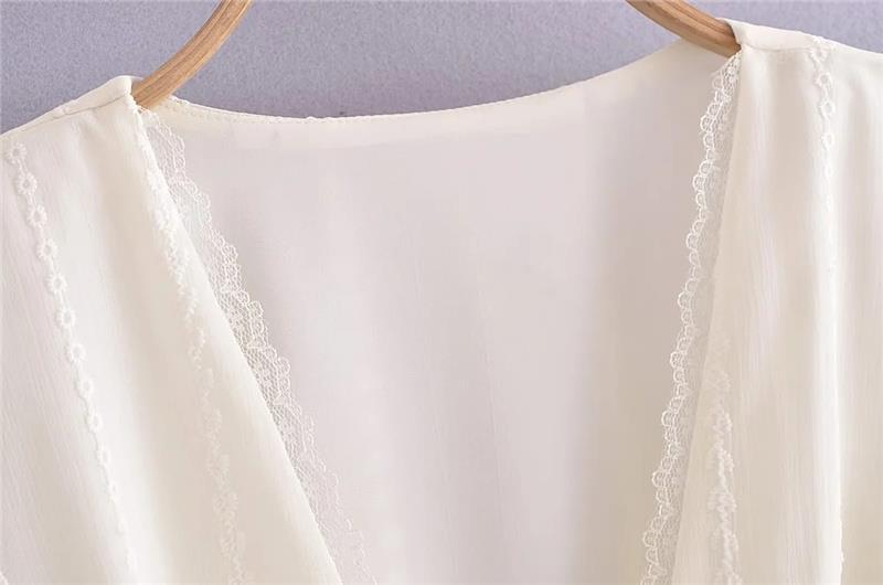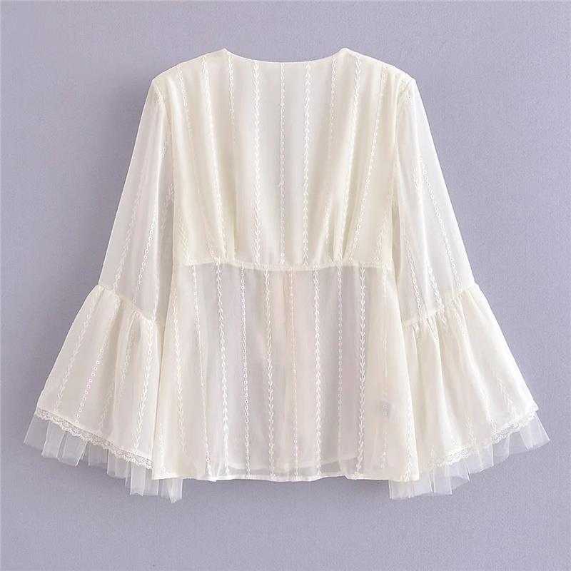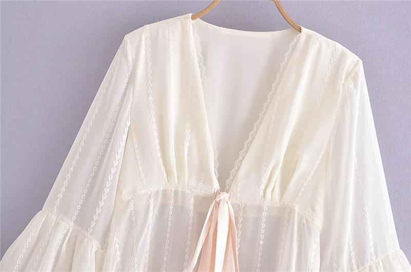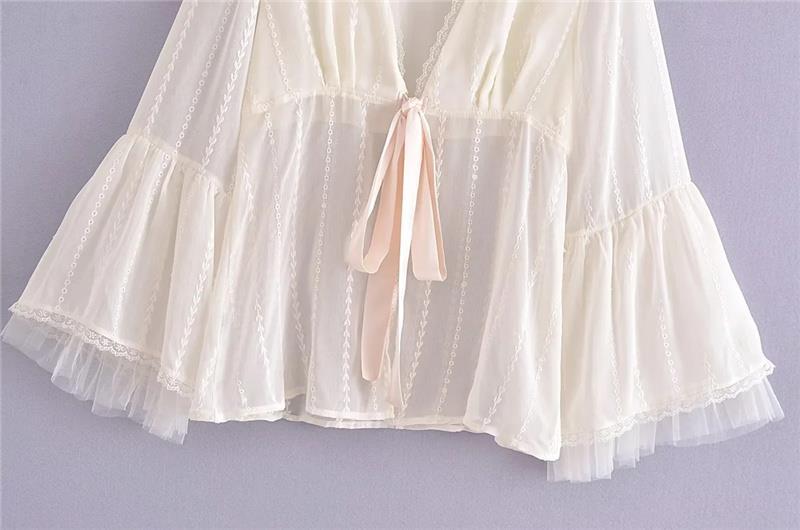 프랑스 스타일 달콤한 레이스 V-넥 자수 혼 슬리브 태양 보호 가디건 세련된 연령 감소 느슨한 레이스 업 여성을위한 우아한 탑