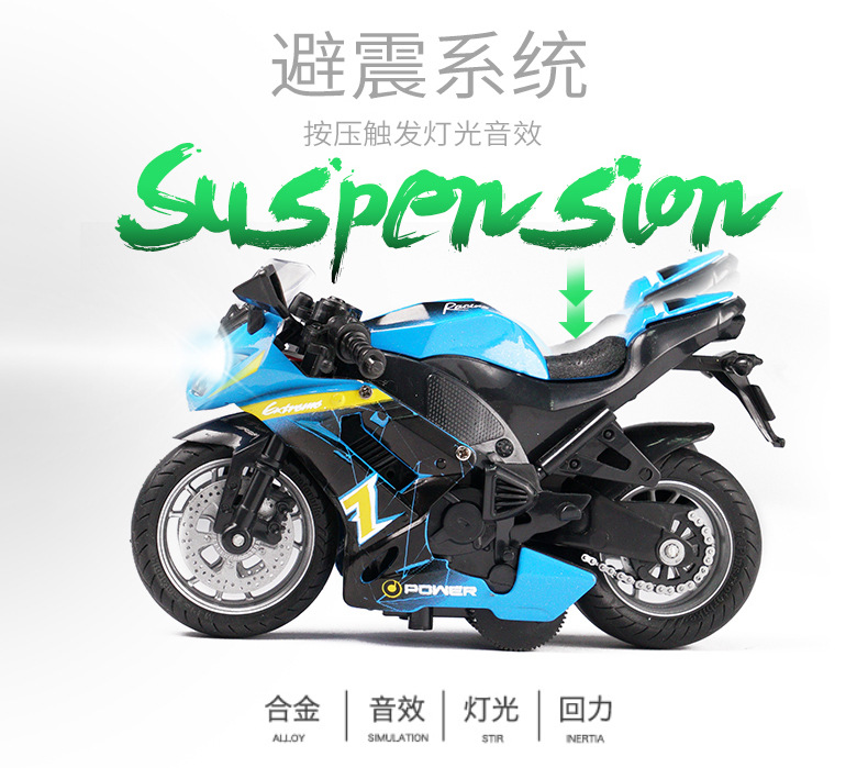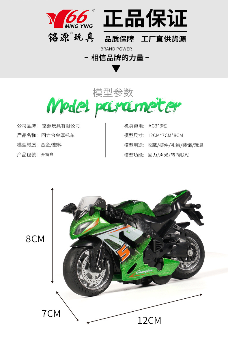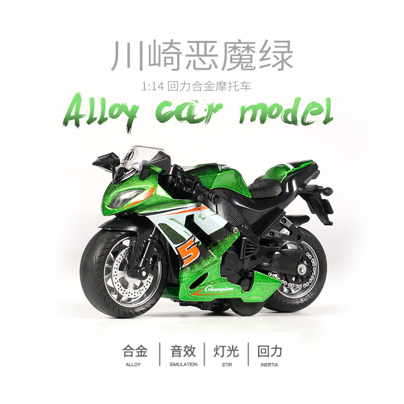 가와사키 오토바이 합금 모형 어린이 장난감 자동차 시뮬레이션 모형 빛 음향 효과 금속 장식품 해외 무역 핫 세일스토어 가기