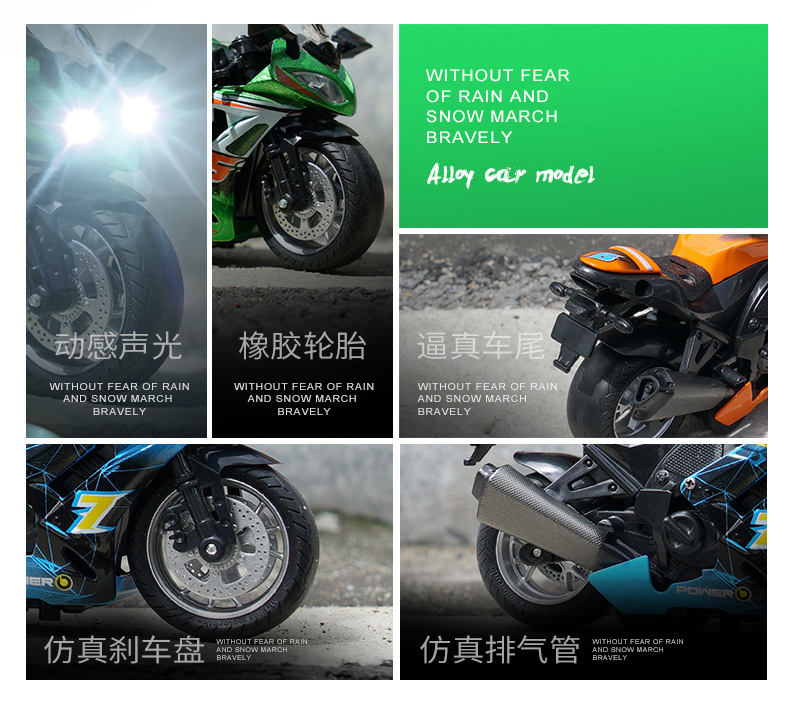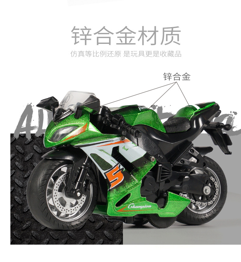 가와사키 오토바이 합금 모형 어린이 장난감 자동차 시뮬레이션 모형 빛 음향 효과 금속 장식품 해외 무역 핫 세일