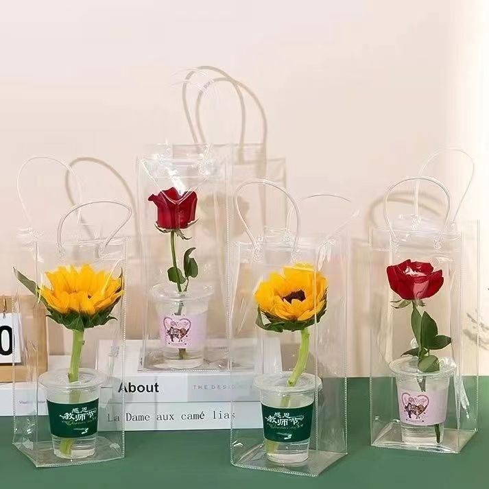 PVC 투명한 물 컵 꽃 세트 DIY 인터넷 인기 꽃 핸드백 Tanabata 발렌타인 데이 520 꽃 컵 선물 가방스토어 가기