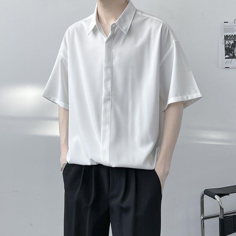 비 다림질 드레이핑 반팔 셔츠 남성용 아이스 실크 여름 세트 가벼운 성숙한 바람 세트 느슨한 셔츠 남성