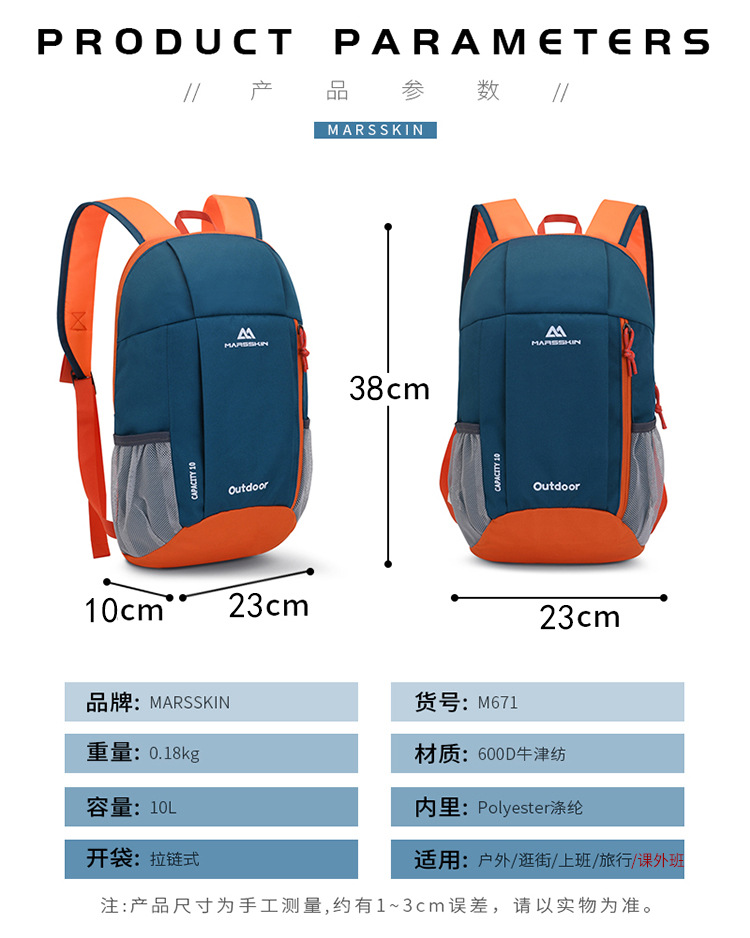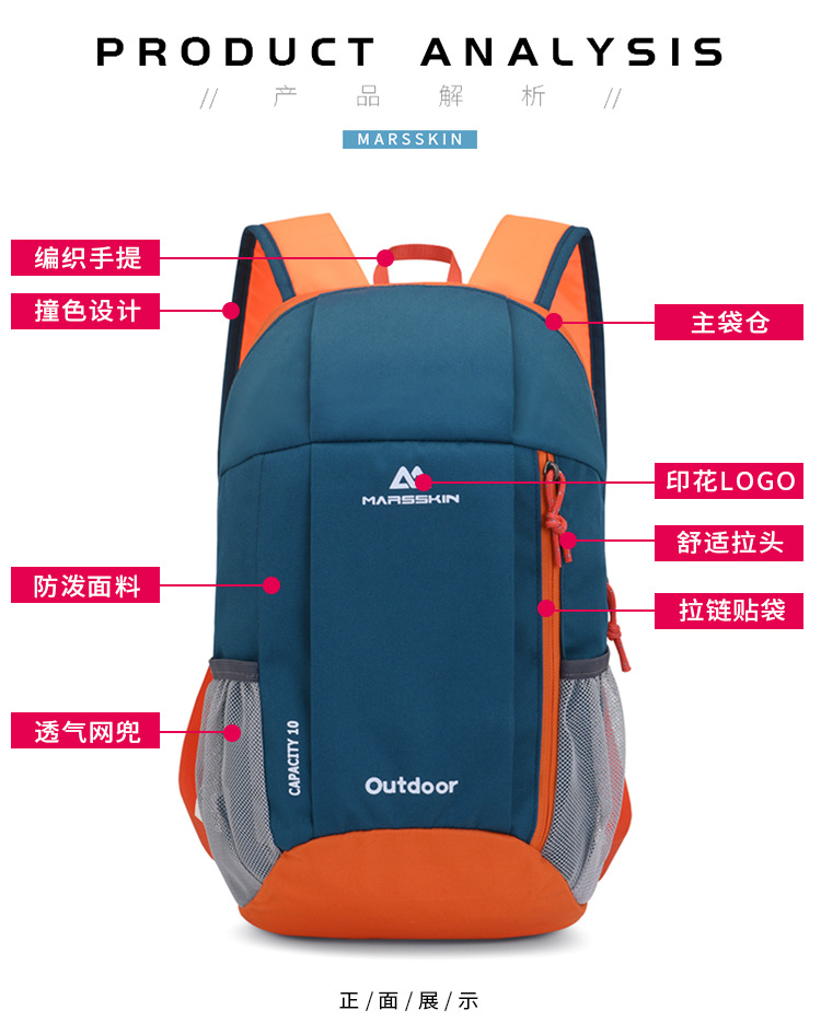 야외 스포츠 배낭 다기능 등산 가방 10L 캐주얼 작은 책가방 소년과 소녀를 위한 경량 여행 가방