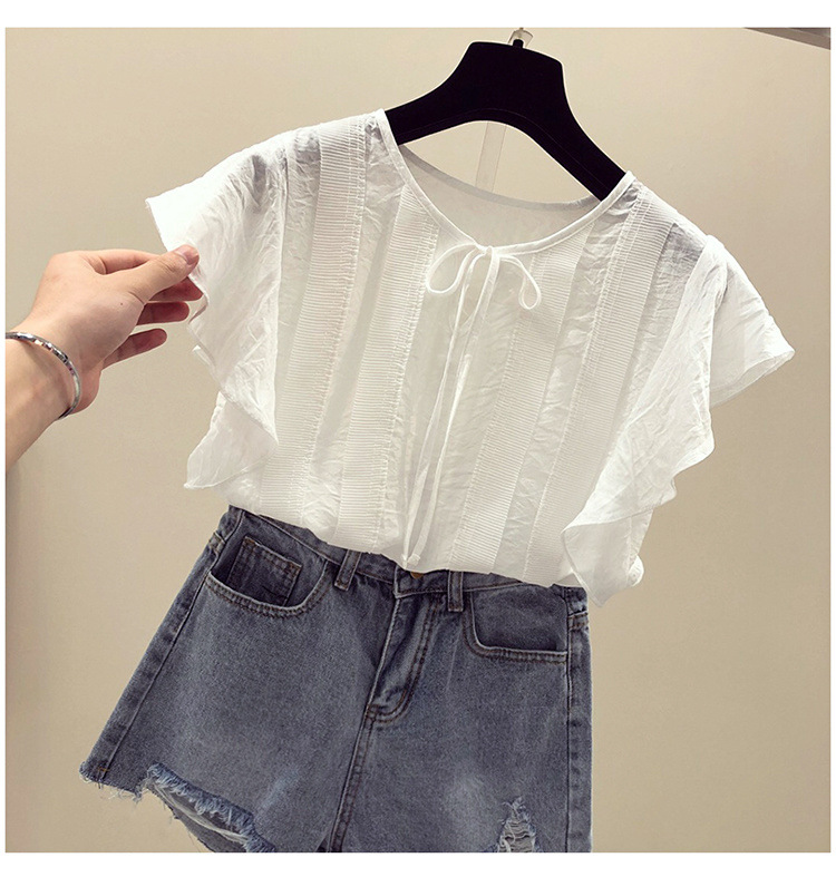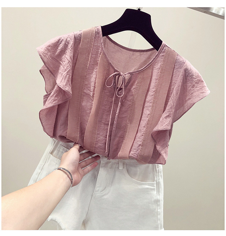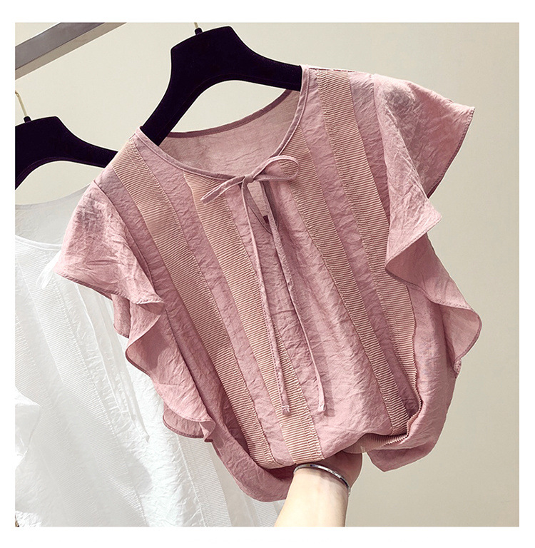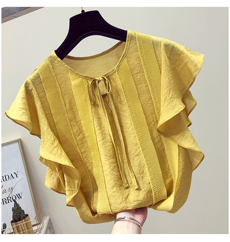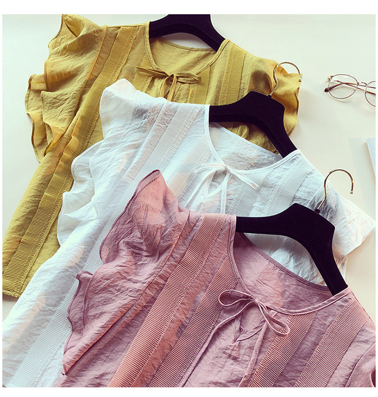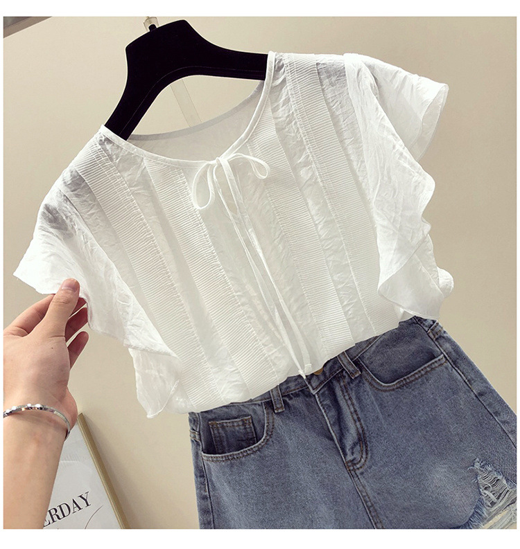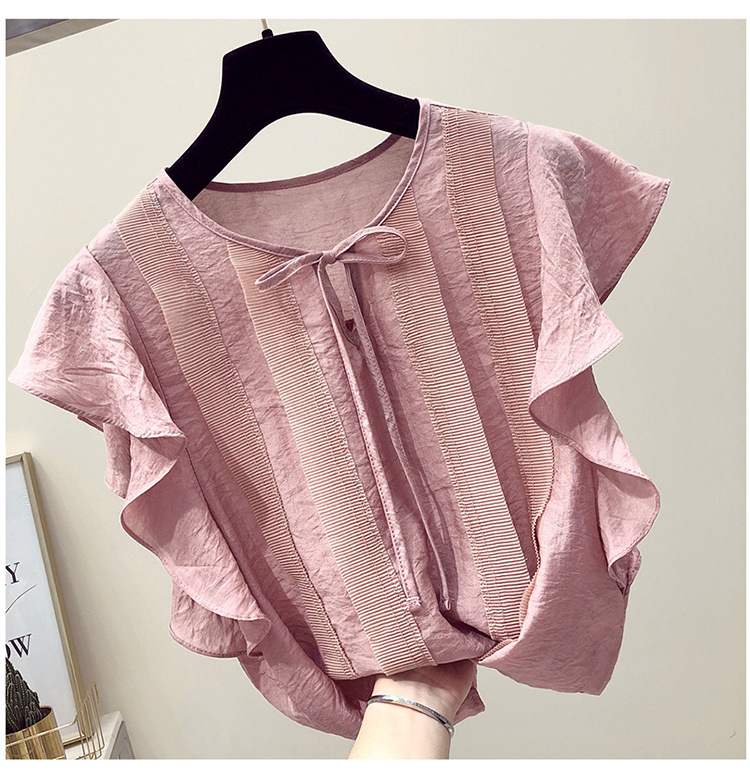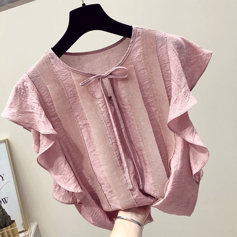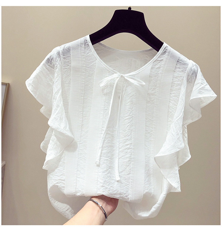 2023 여름 배꼽 덮음 반팔 쉬폰 셔츠 여성용 느슨한 세련된 셔츠 한국 스타일 신선한 스타일 러플 탑