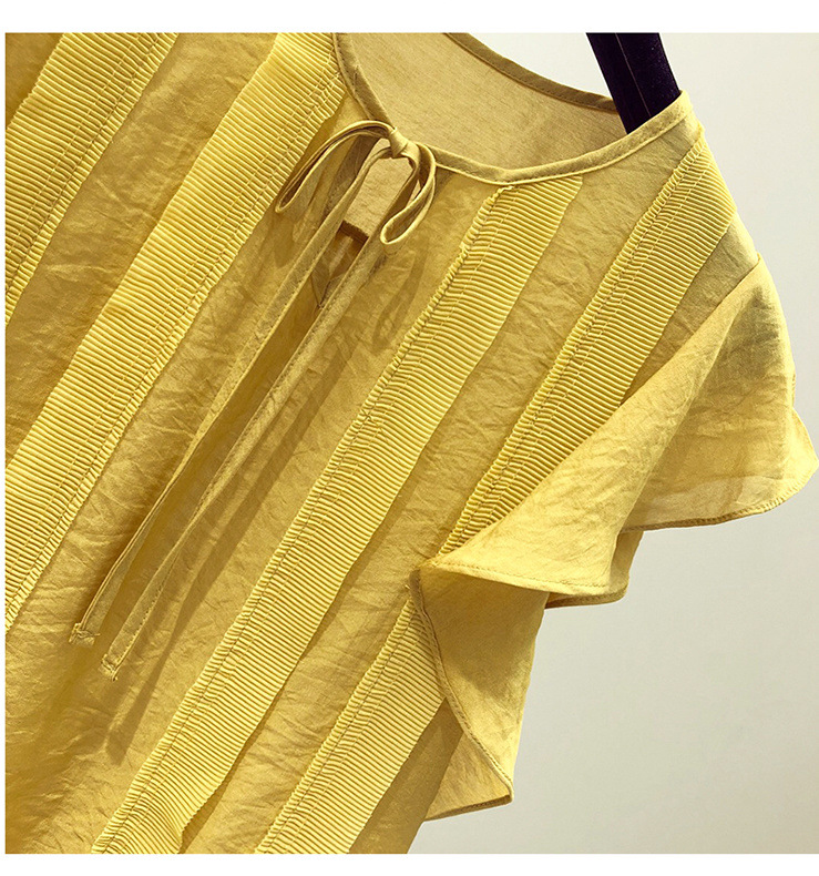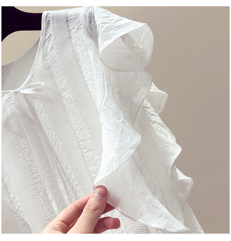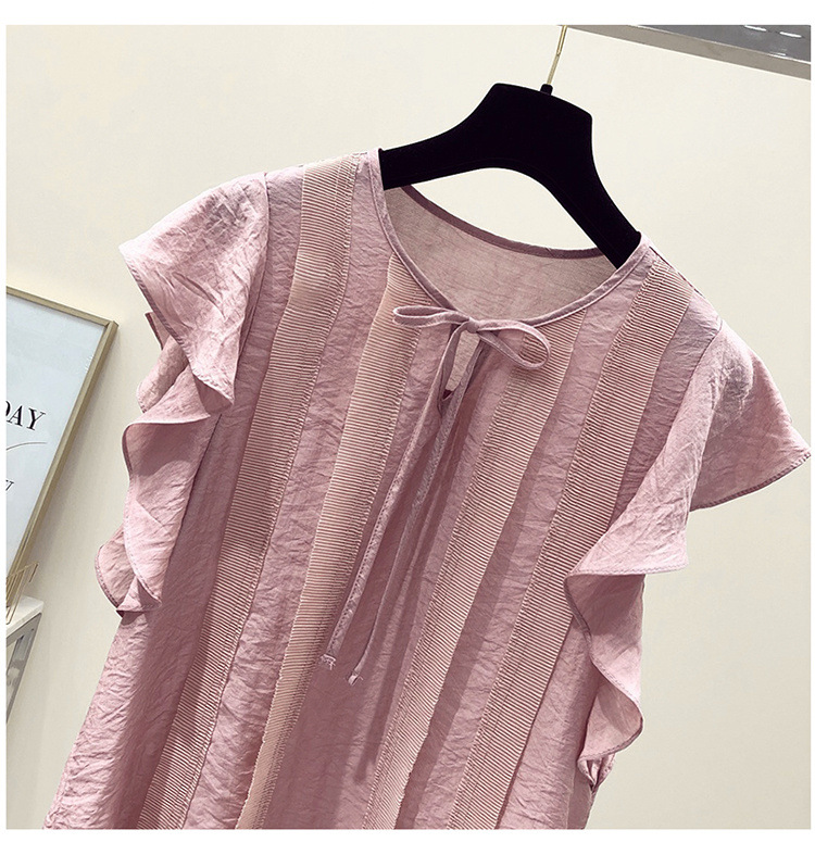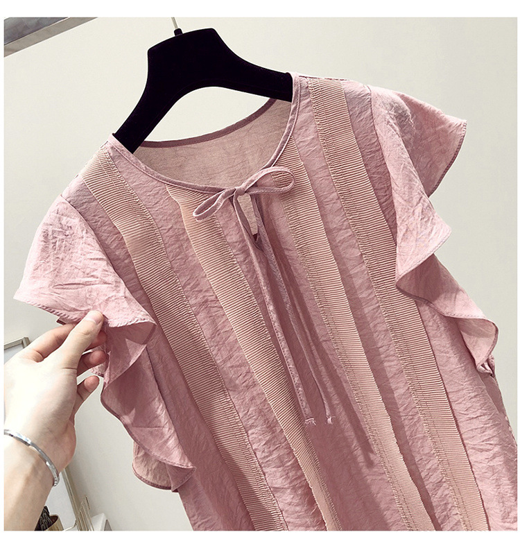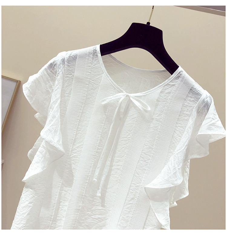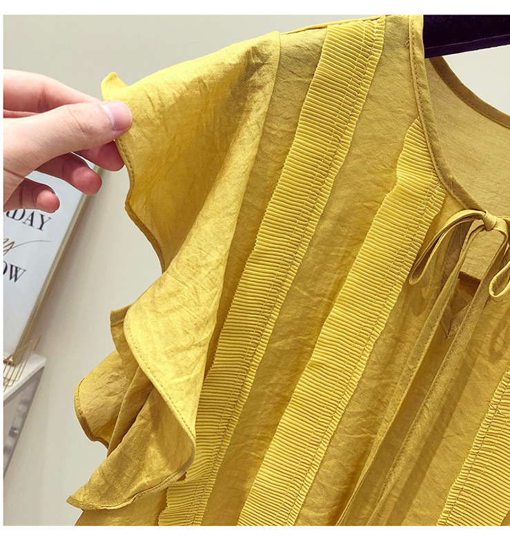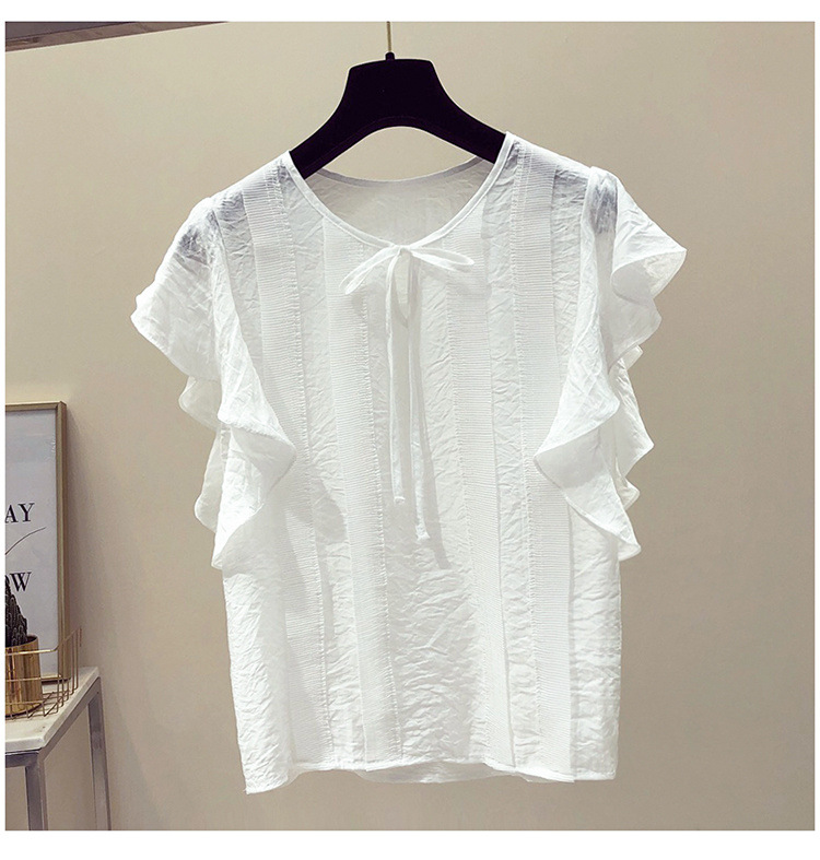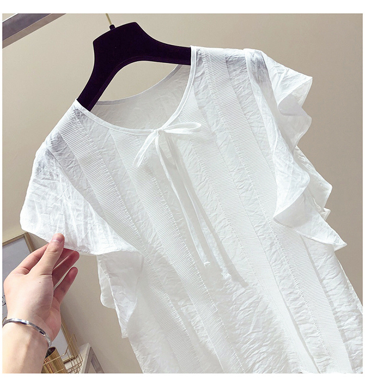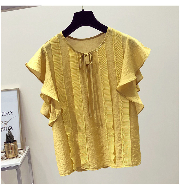 2023 여름 배꼽 덮음 반팔 쉬폰 셔츠 여성용 느슨한 세련된 셔츠 한국 스타일 신선한 스타일 러플 탑