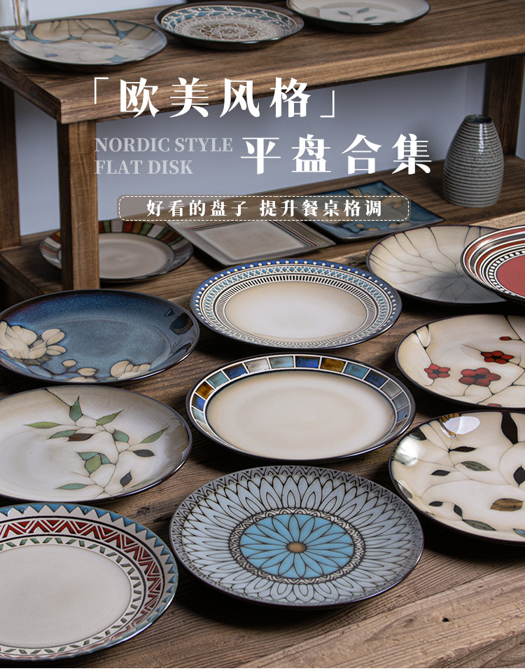 窯変釉 식기 스테이크 접시 요리 접시 세라믹 유약 밑색 파스타 접시 아침 식사 접시 무료 배송 전자레인지 트레이