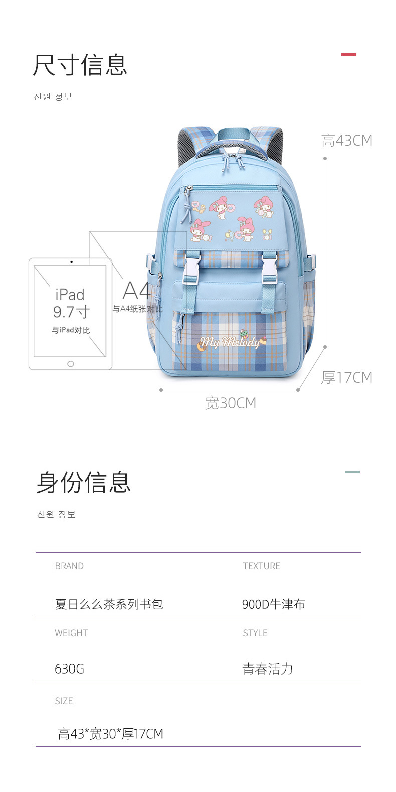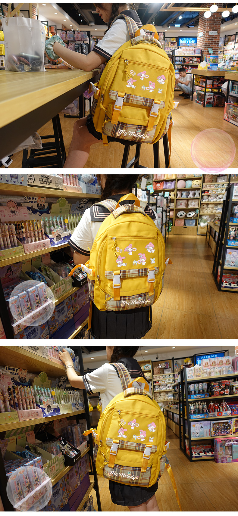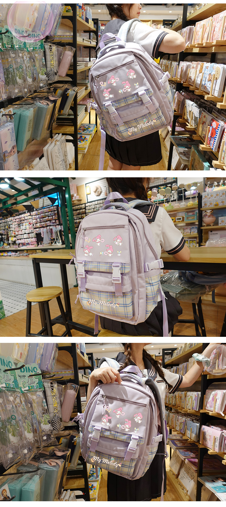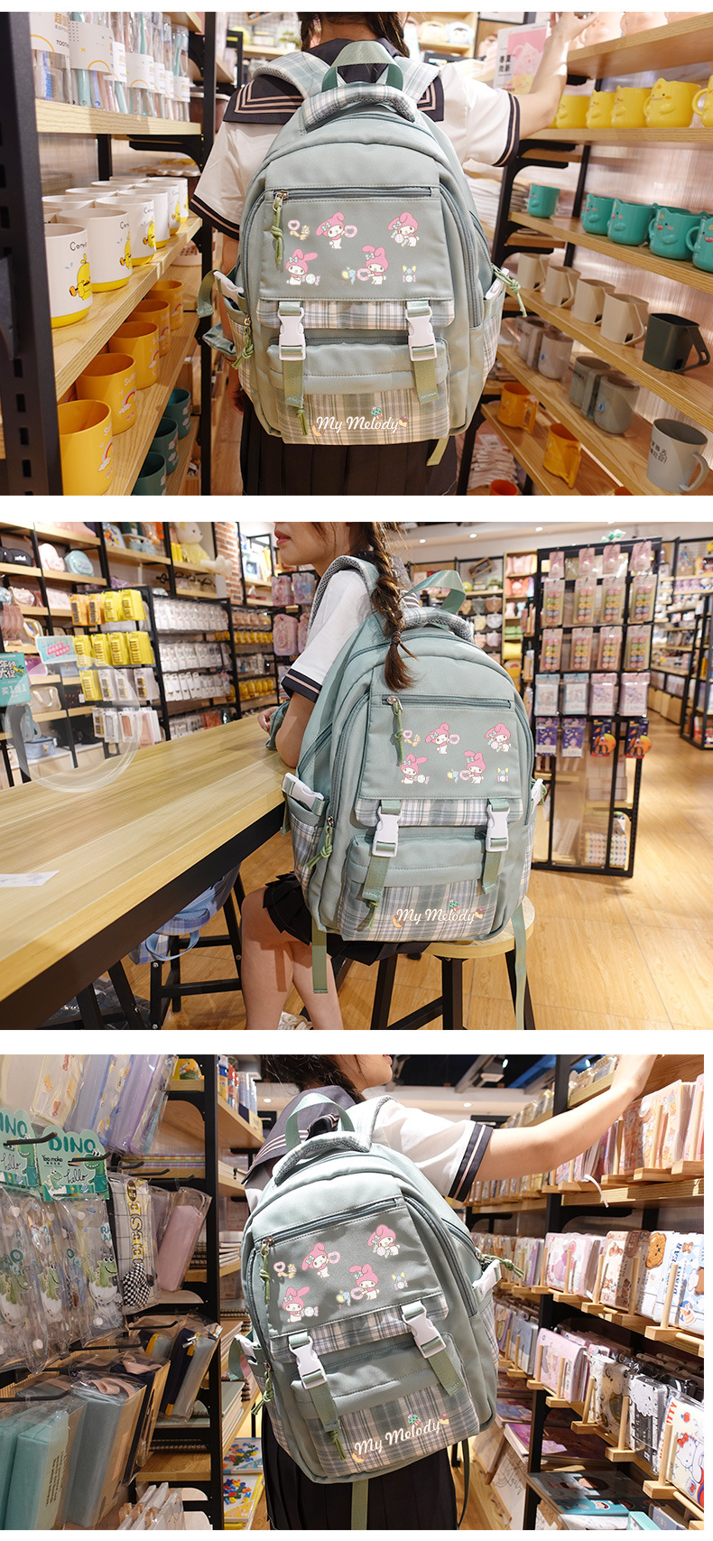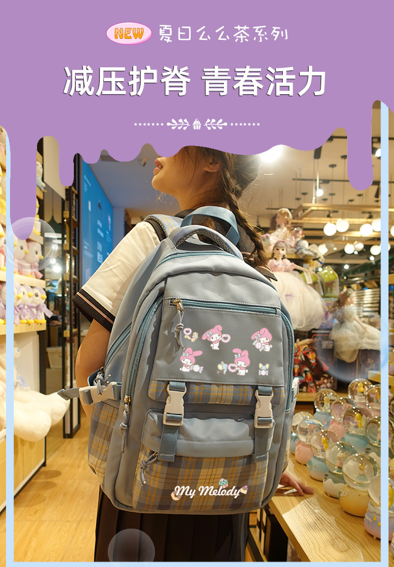 메를로 초등학교 가방 여성용 귀여운 초경량 릿지 백팩 어린이 중학교 산리오 일본어 배낭스토어 가기