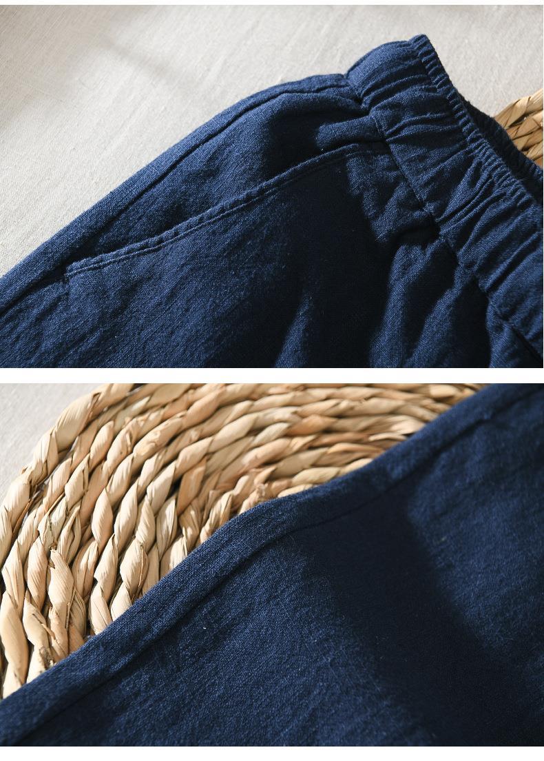 L8226 면과 린넨 바지 드로우 스트링 탄성 허리 캐주얼 바지 남성용 단색 스포츠 스트레이트 팬츠 헤어 세대스토어 가기
