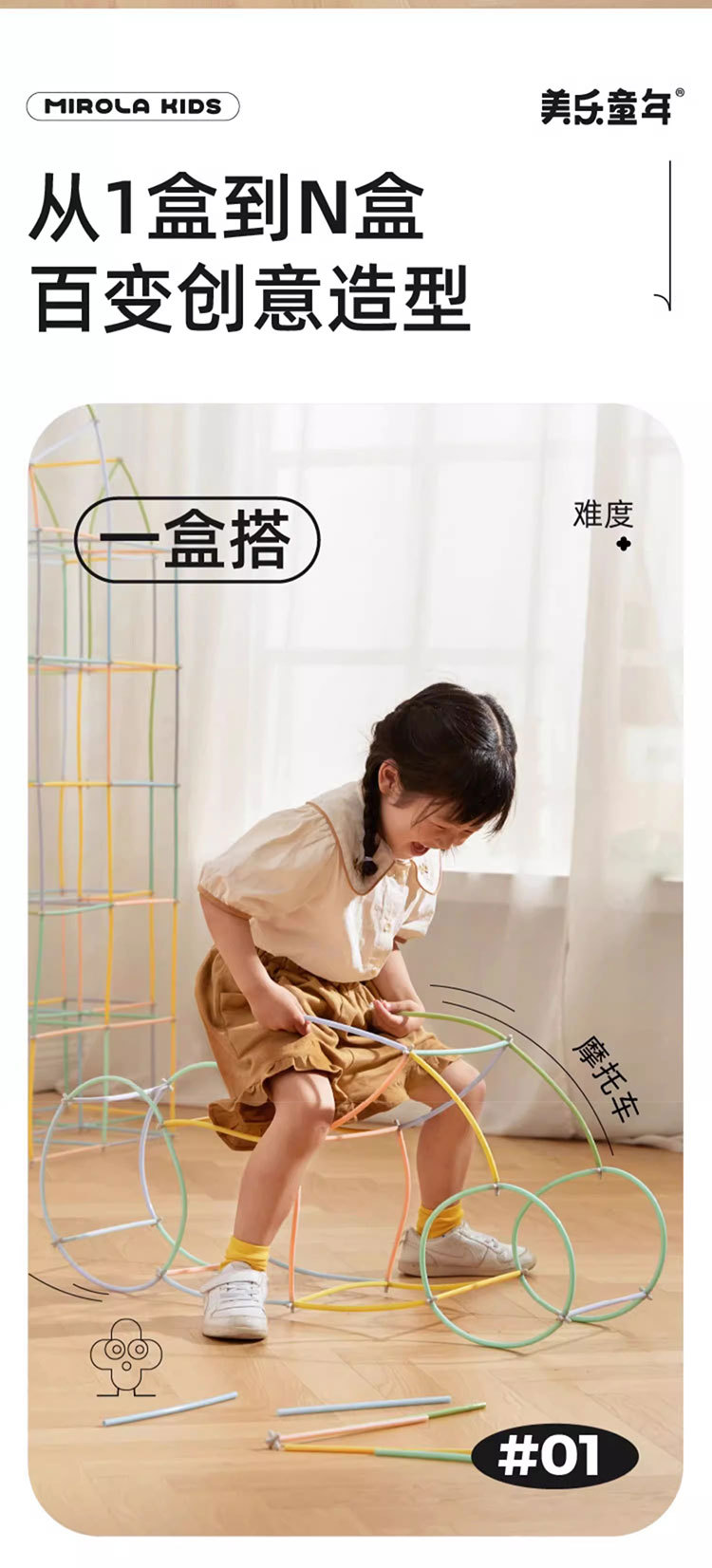 Meile 어린 시절 어린이 접합 사고 스틱 밀짚 빌딩 블록 아기 공간 건축 창조적 인 브래킷 교육 완구스토어 가기