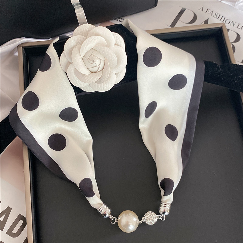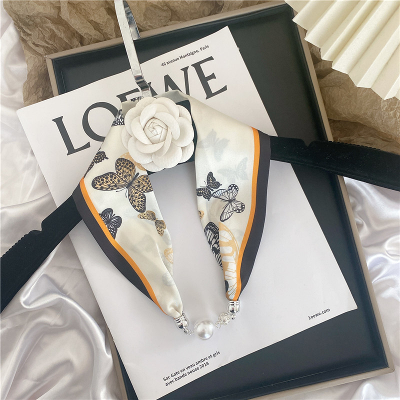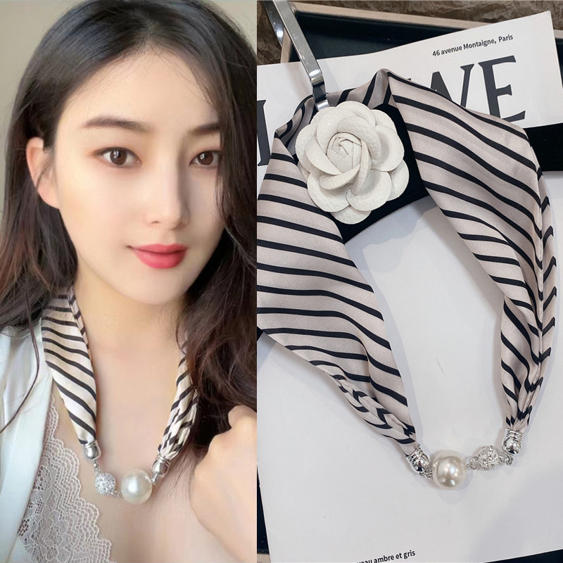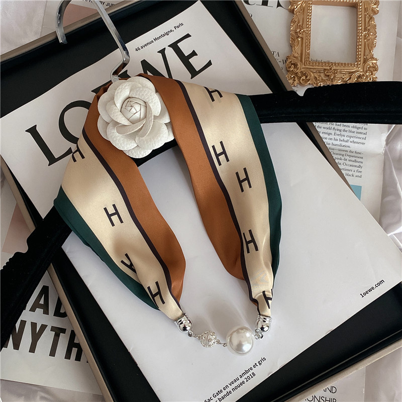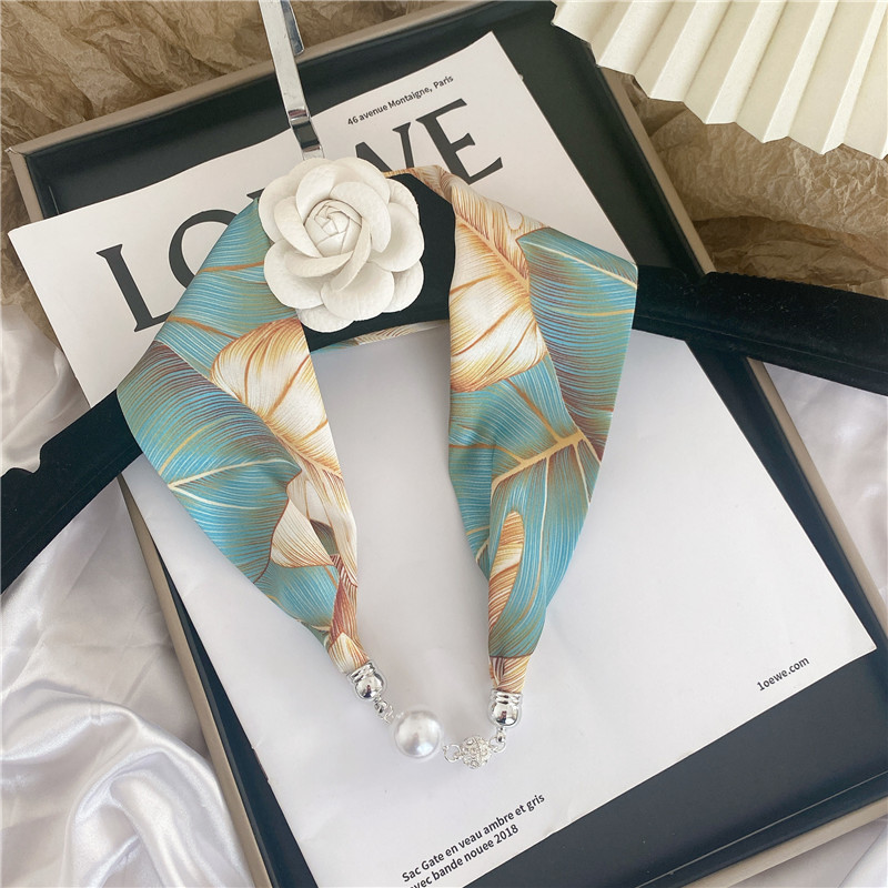 마그네틱 버클 실크 스카프 여름 목걸이 게으른 스카프 펜던트 얇은 스카프 헤어 밴드 목 보호 쇄골 진주 작은 스카프 긴 스트립