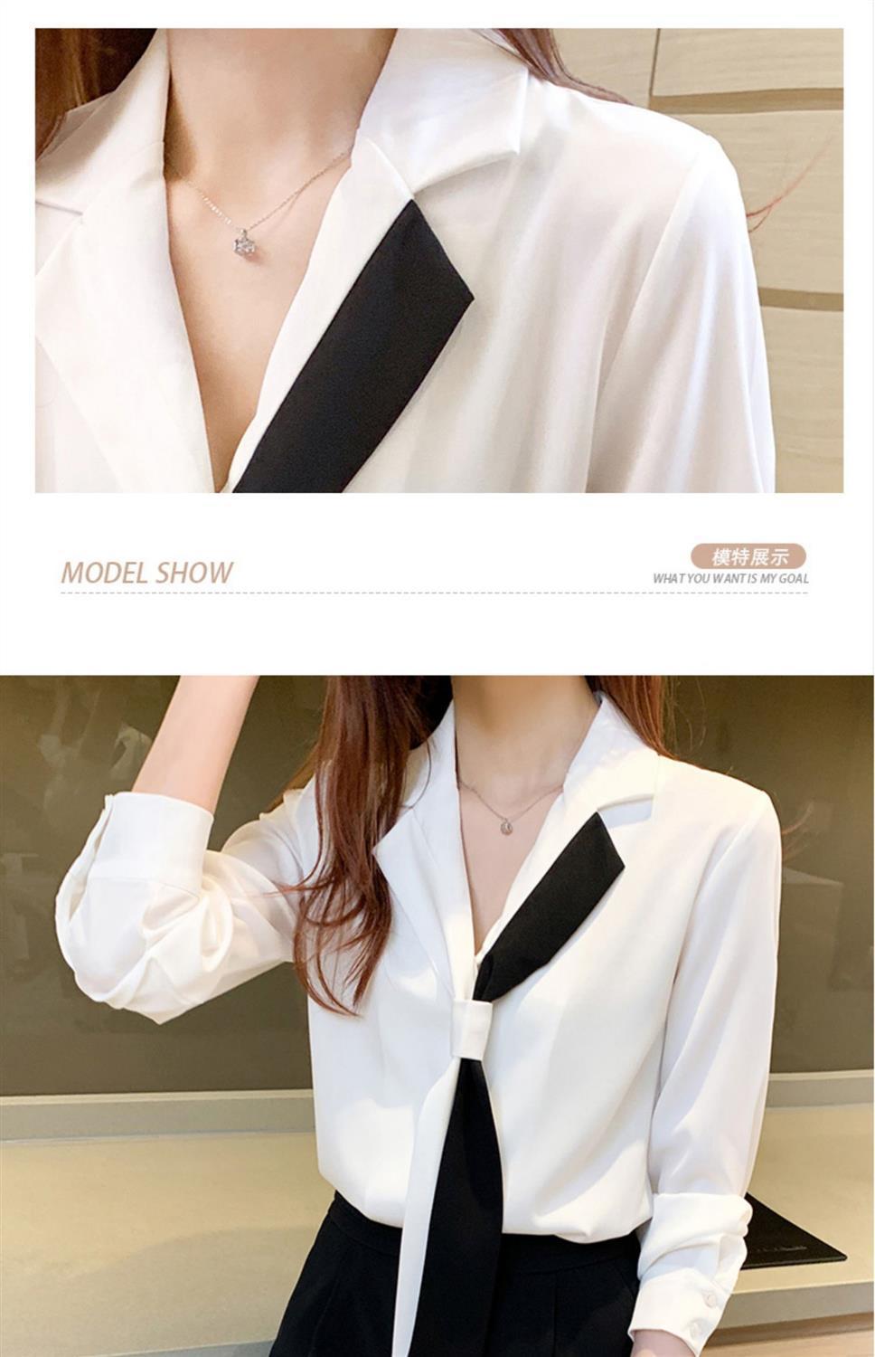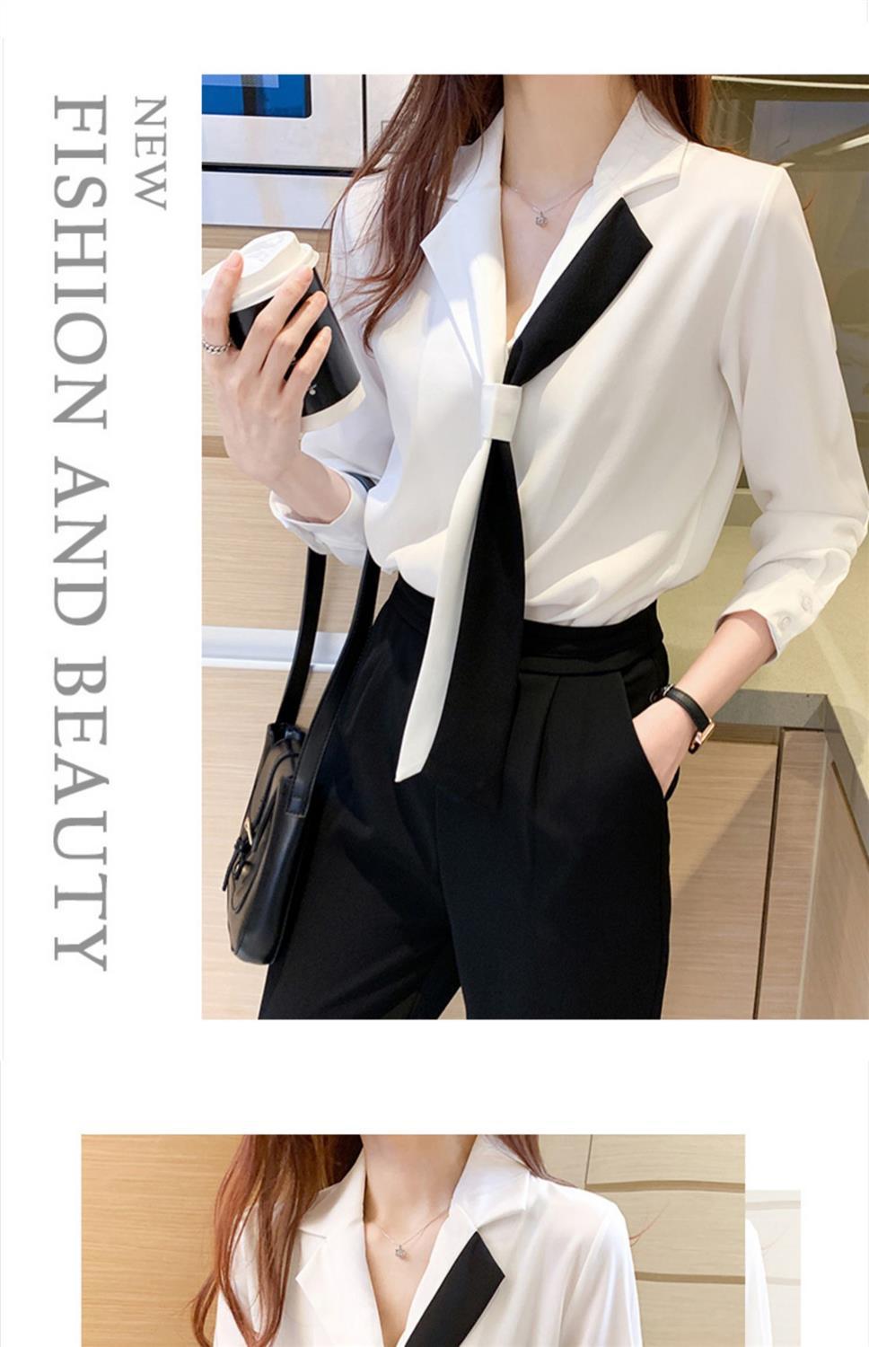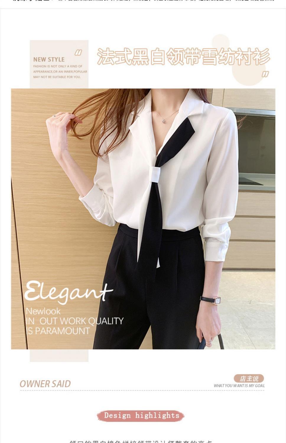 쉬폰 화이트 셔츠 여성의 디자인 감각 틈새 세트 칼라 셔츠 흑백 대비 색상 우아한 전문 서양 스타일 탑스토어 가기