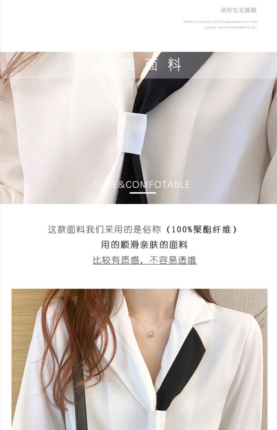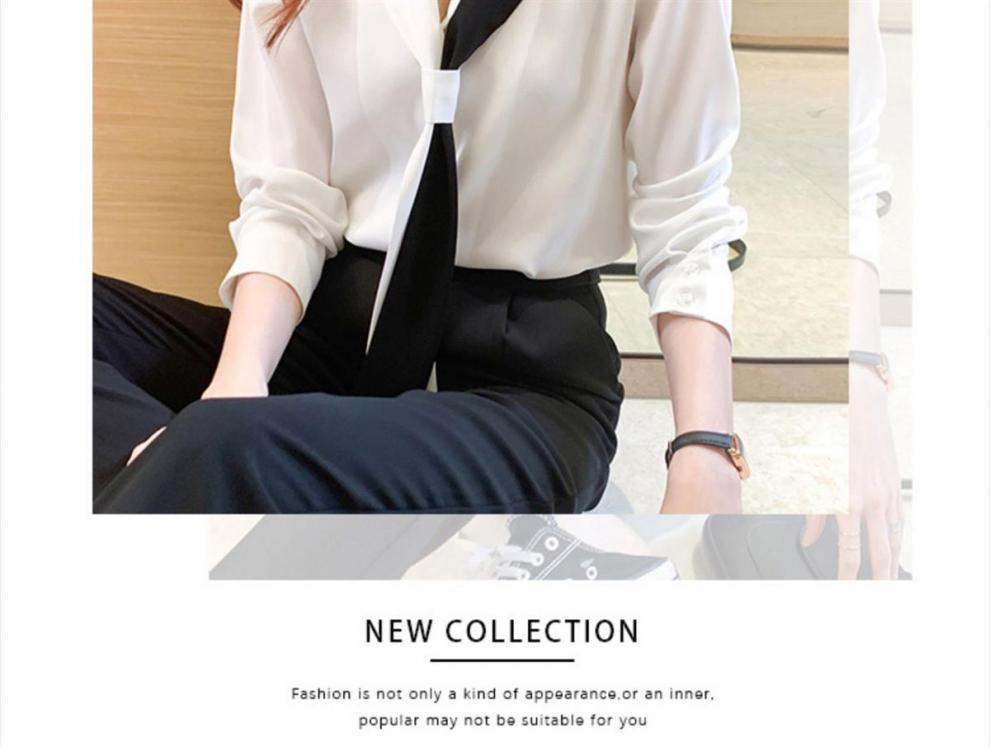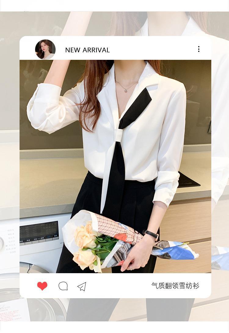 쉬폰 화이트 셔츠 여성의 디자인 감각 틈새 세트 칼라 셔츠 흑백 대비 색상 우아한 전문 서양 스타일 탑스토어 가기