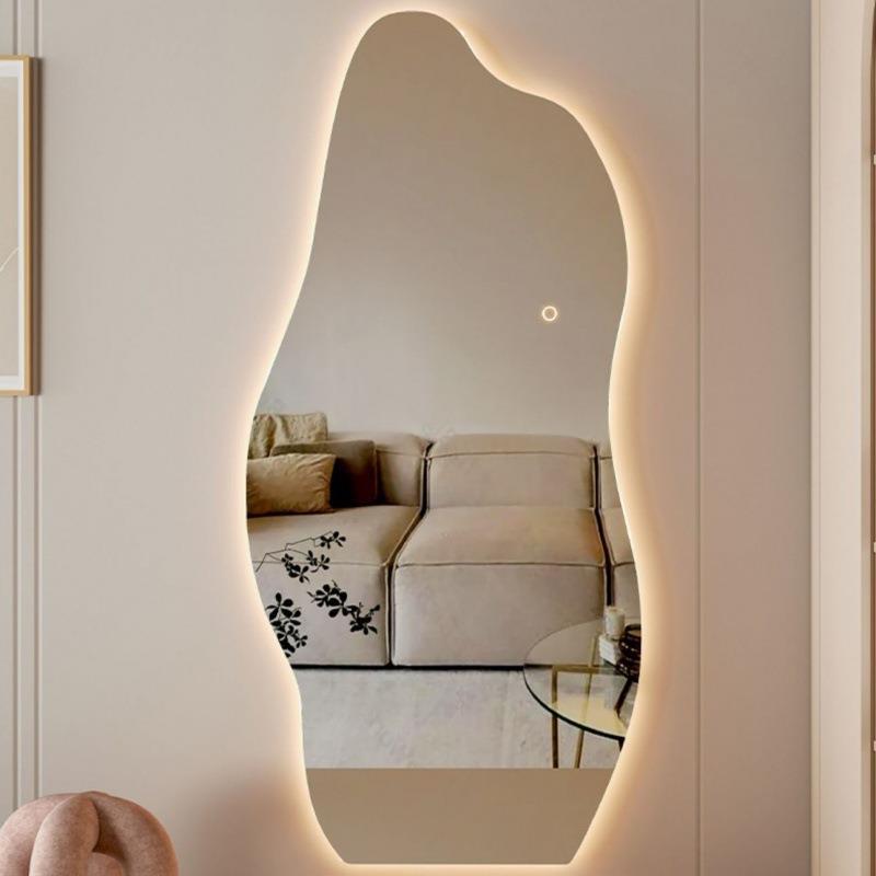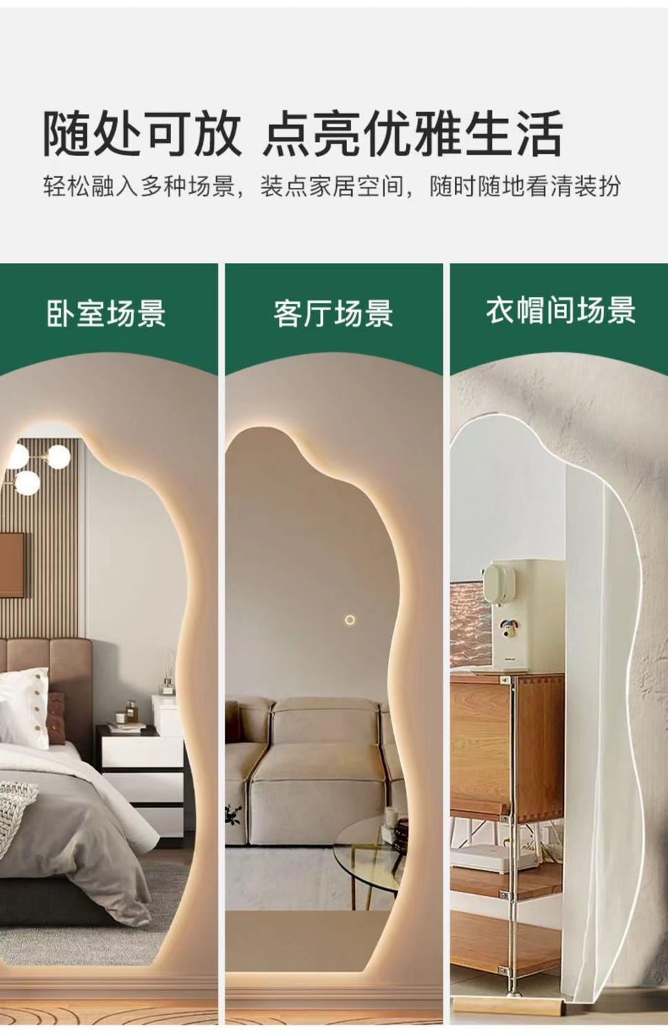 전신 바닥 거울 불규칙한 전신 거울 가정용 의류 매장 침실 사이버 연예인 이상 LED 발광 드레스 거울