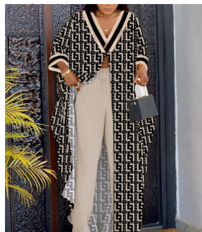 유럽 및 미국 여성 의류 2023 Amazon AliExpress 패션 V-neck 느슨한 긴팔 블라우스 drawstring 스트레이트 바지 세트스토어 가기