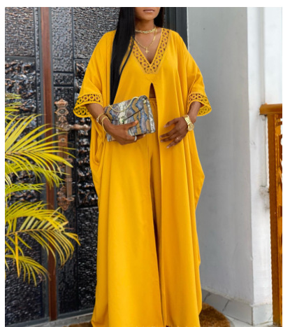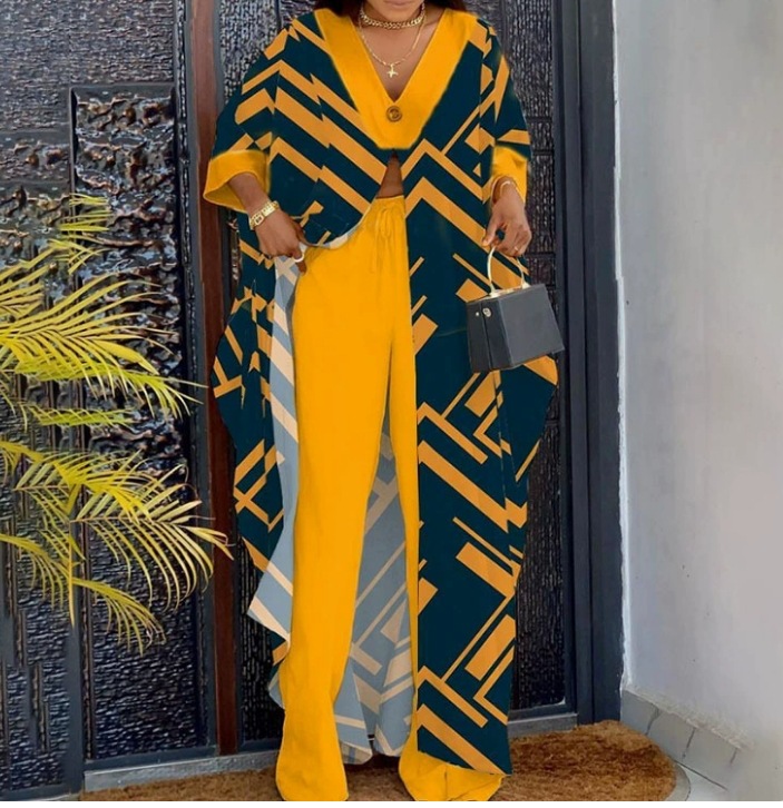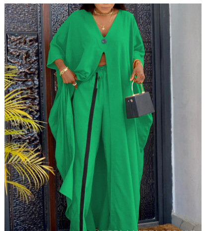 유럽 및 미국 여성 의류 2023 Amazon AliExpress 패션 V-neck 느슨한 긴팔 블라우스 drawstring 스트레이트 바지 세트