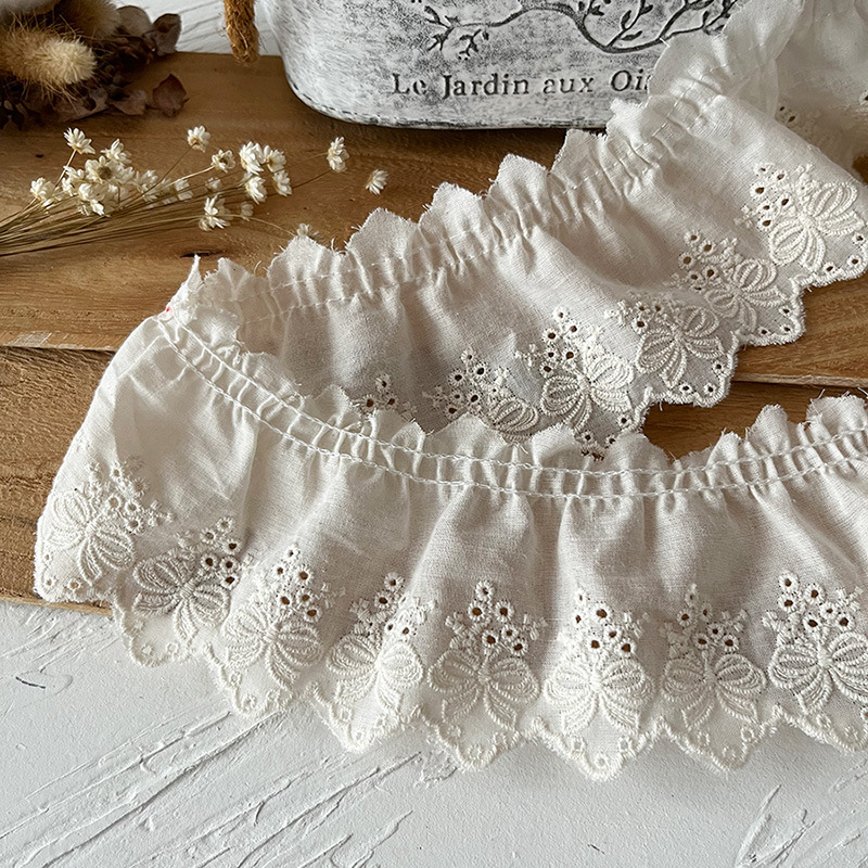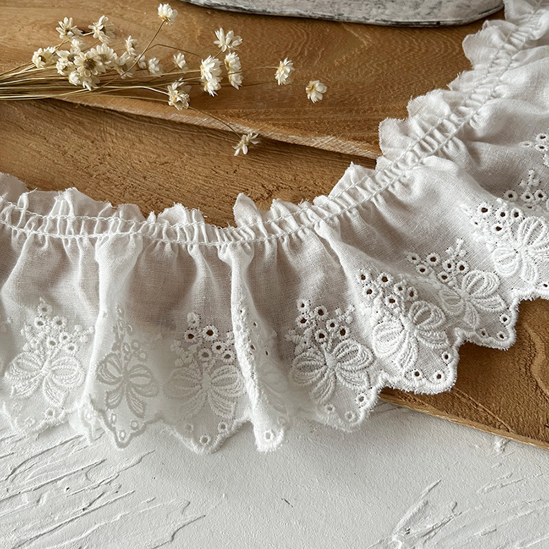 레이스 액세서리 주름 코튼 자수 원단 화이트 보우 자수 스커트 밑단 커프 플런스