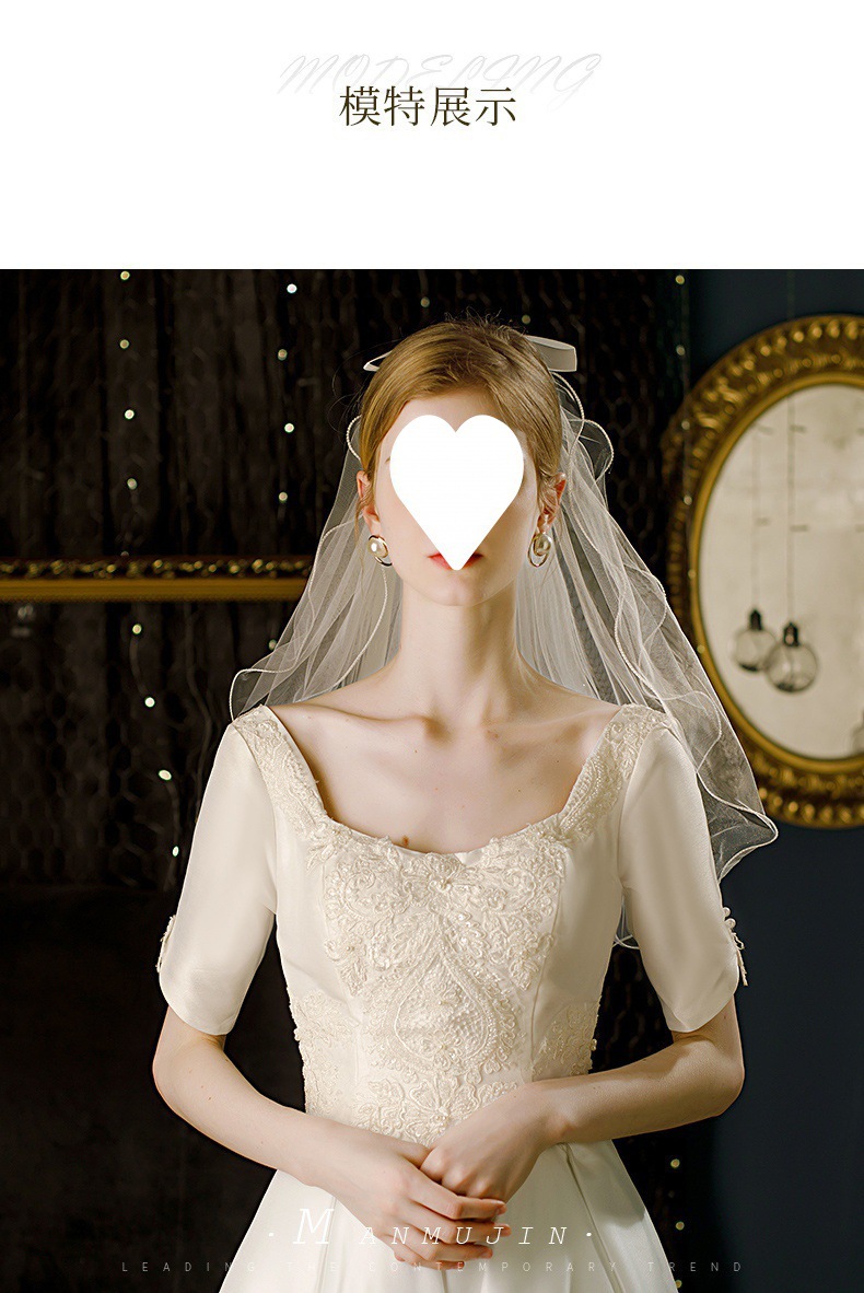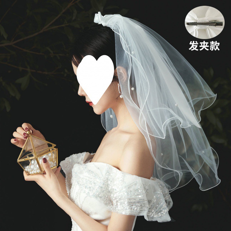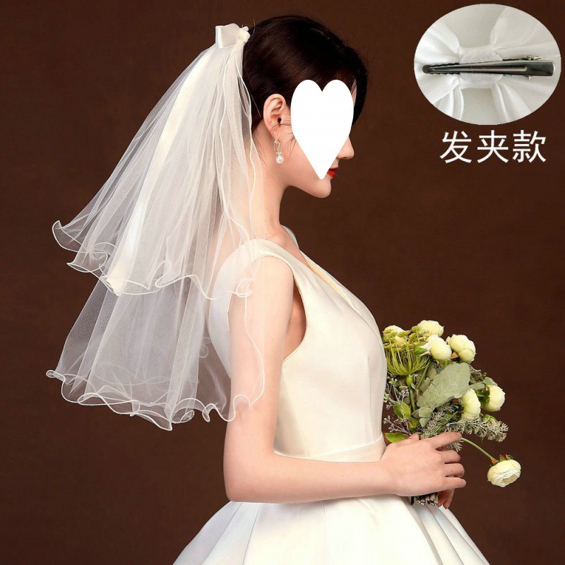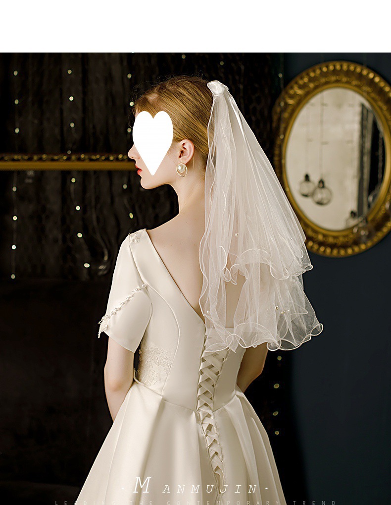 베일 라이센스 웨딩 원피스 머리 장식 신부 사진 사이버 연예인 간단한 Xiansen 스타일 화이트 취재 짧은 알몸 원사 독립 역