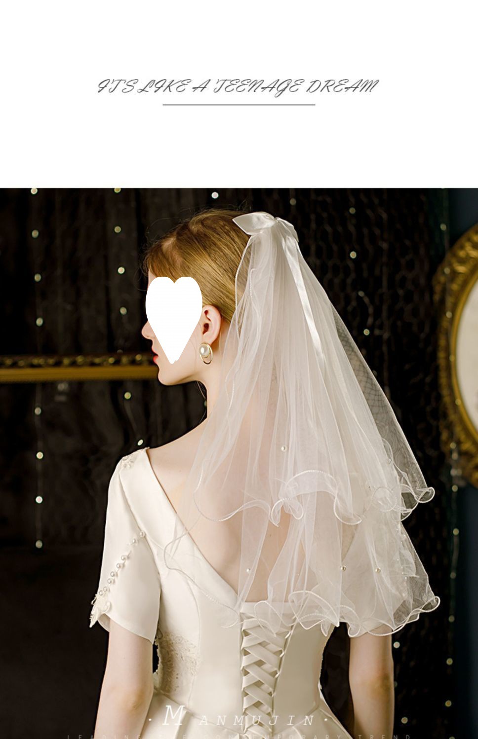 베일 라이센스 웨딩 원피스 머리 장식 신부 사진 사이버 연예인 간단한 Xiansen 스타일 화이트 취재 짧은 알몸 원사 독립 역스토어 가기