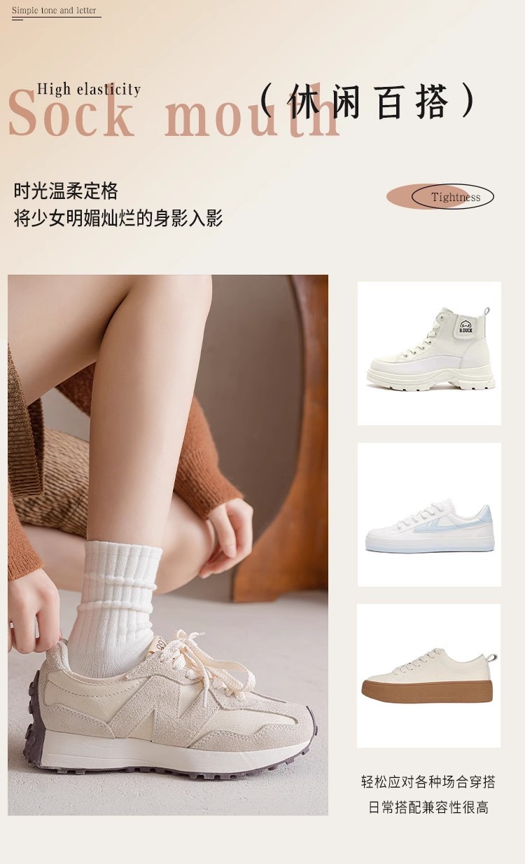 쌓인 양말 여성용 중간 길이 양말 봄과 가을 겨울 스포츠 유행 인터넷 연예인 흰색 스타킹 겉옷 여름 재고