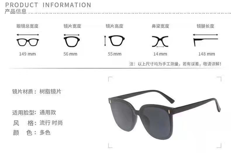 GM 선글라스 여성용 대형 프레임 선글라스 남성용 운전 트렌디 한 자외선 차단 인터넷 연예인 같은 스타일 안경 모든 경기 커버스토어 가기