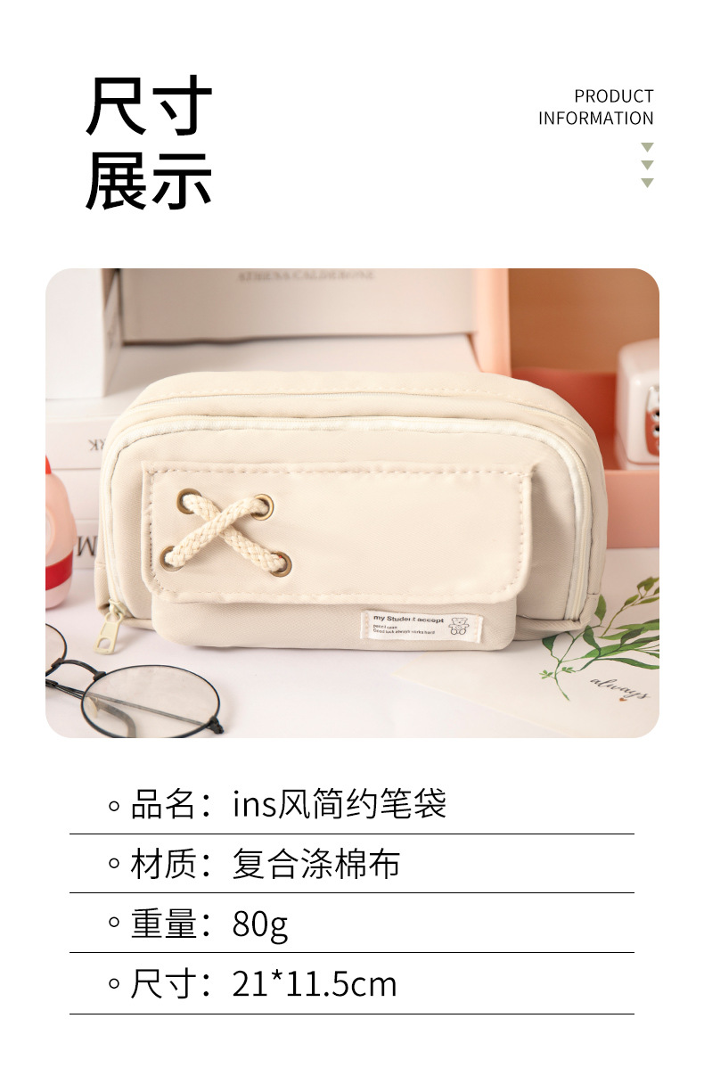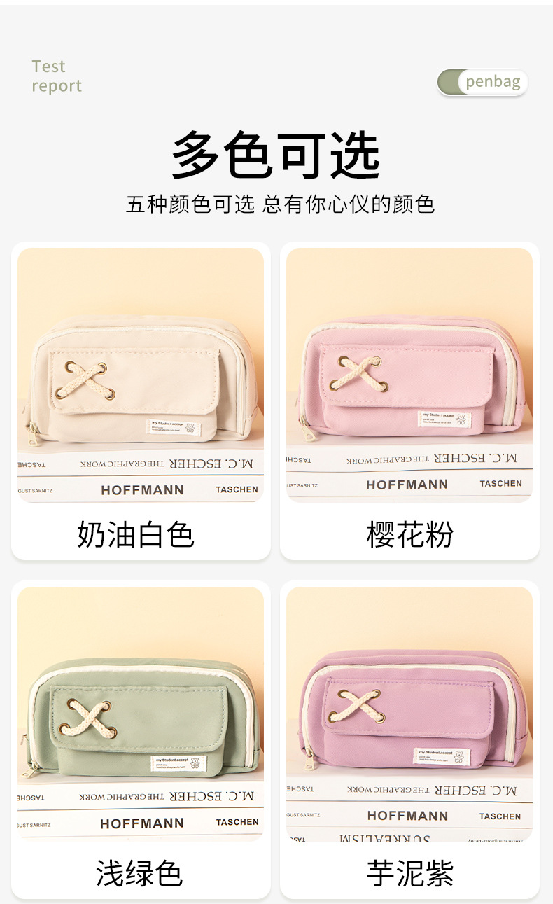 대마줄 필통, 예쁘고 심플한 일본 스타일, 남녀 공용 문구, 중학생, 고등학생용, 대용량 필통, 다기능