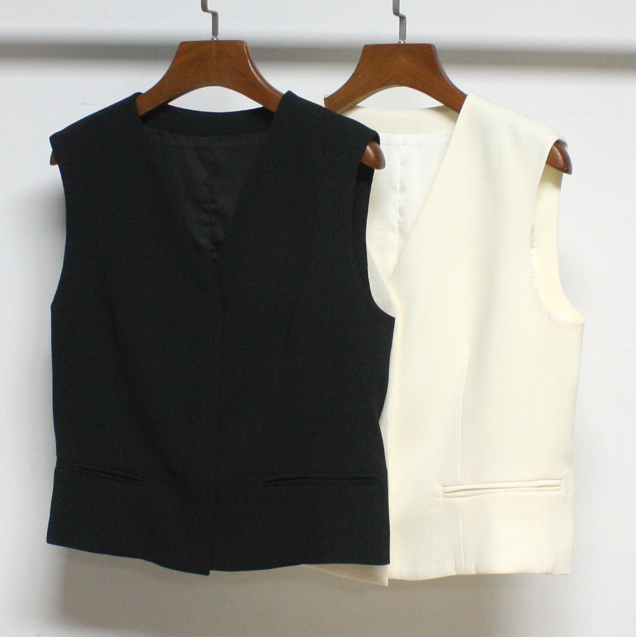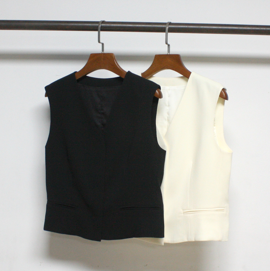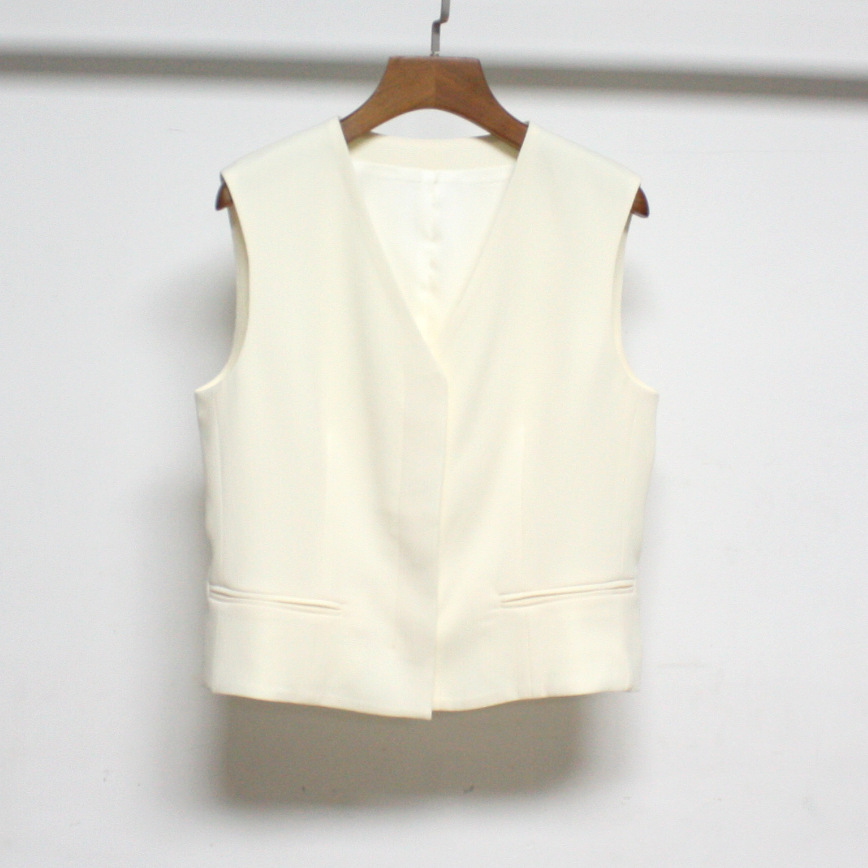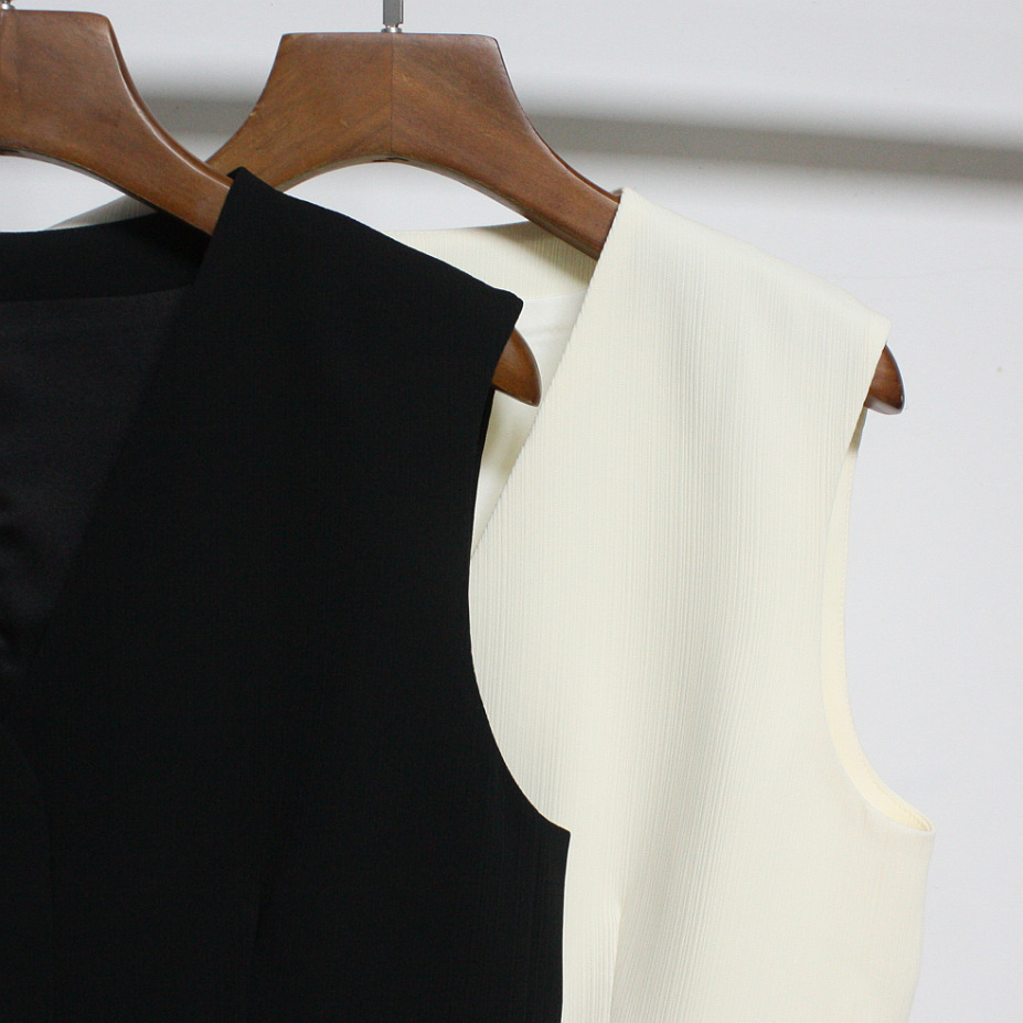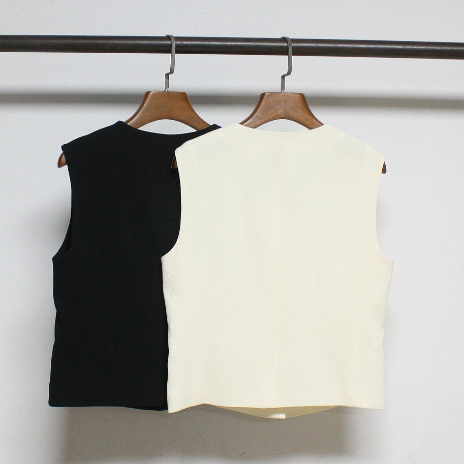 2023 초가을 새로운 TH Tri아세테이트 섬유 혼합 민소매 세트 조끼 우아한 B 착용 슬림핏 민소매 조끼
