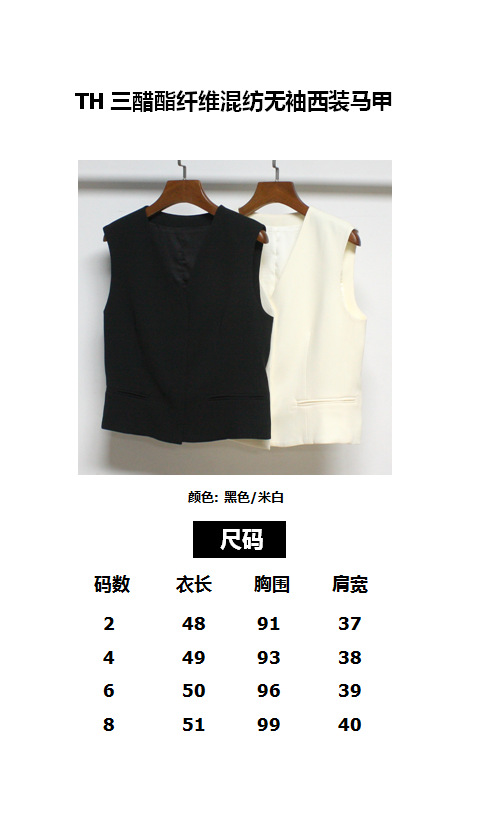 2023 초가을 새로운 TH Tri아세테이트 섬유 혼합 민소매 세트 조끼 우아한 B 착용 슬림핏 민소매 조끼스토어 가기