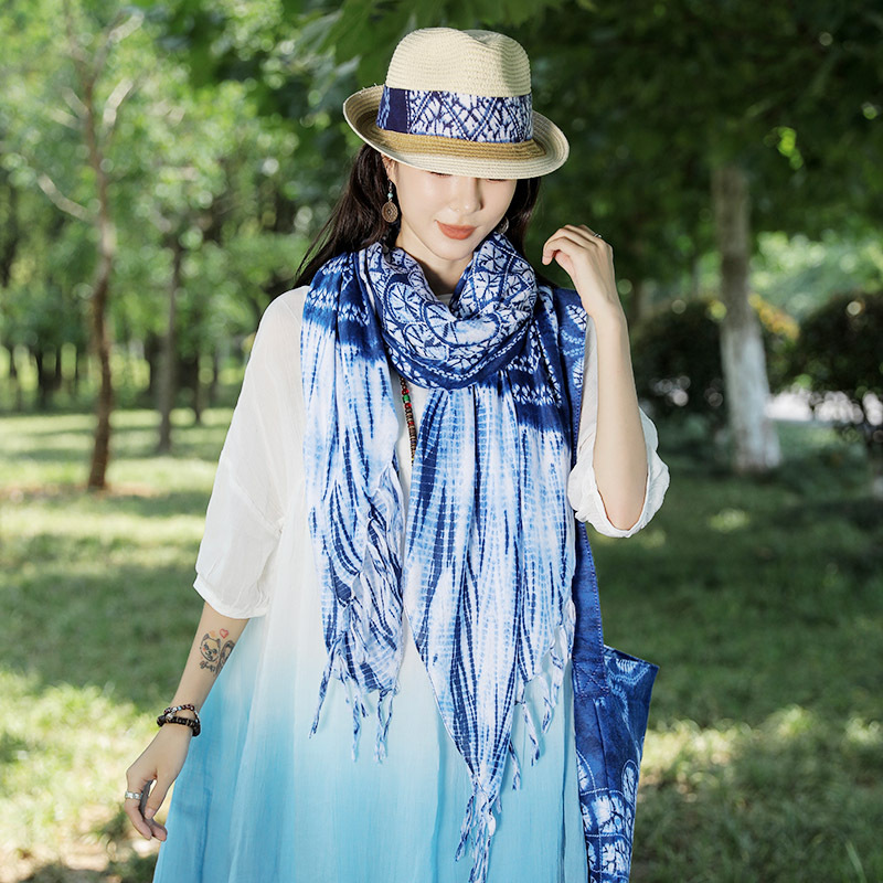 타이 염색 에스닉 스타일 스카프 윈난 관광 로터스 프린트 스카프 면 린넨 스카프 여성용 자외선 차단제 모든 경기 술 숄