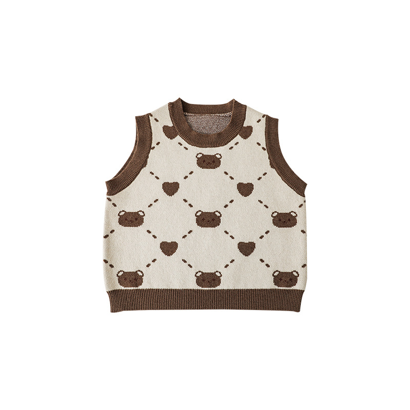 Qiu Duo Meng 여아용 아카데미 스타일 곰돌이 시리즈 셔츠 스커트 세트 2025 봄 가을 아동용 만화 조끼 자켓스토어 가기