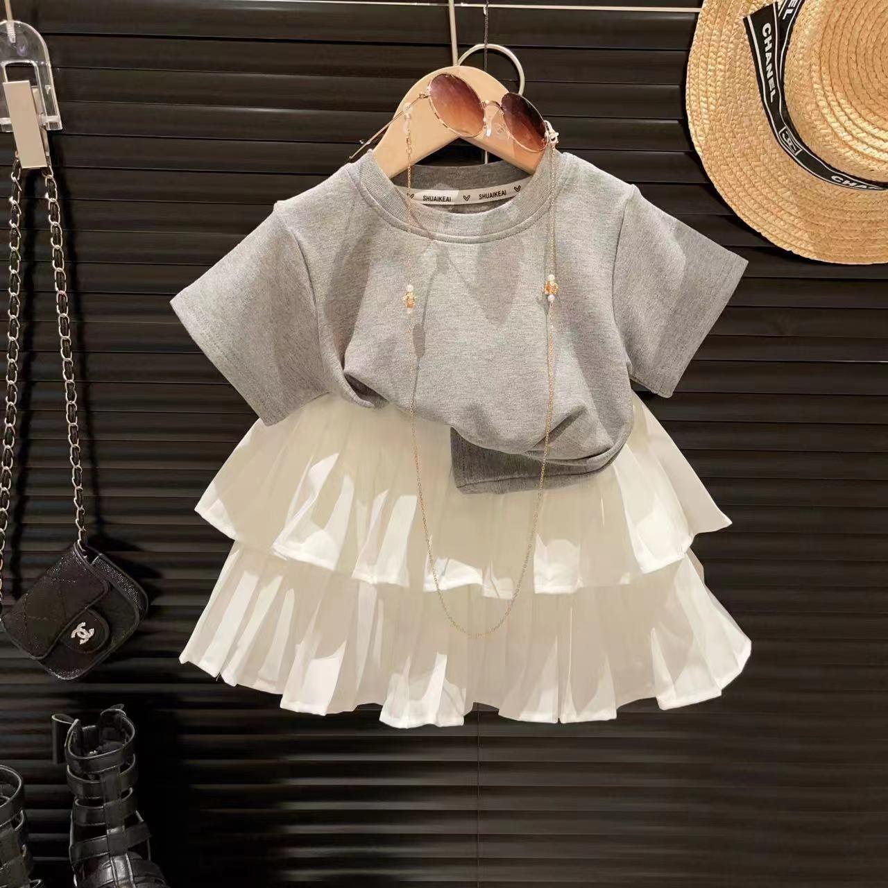 신상 여아 세트, 백리스 반팔 스트레치 티셔츠, 단색 케이크 스커트 투피스 세트, 2025 여름 의류, 도매스토어 가기