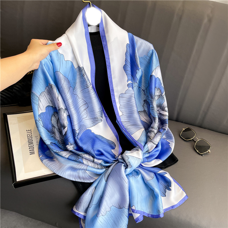 블루 모조 실크 스카프 새로운 스타일 스카프 여성용 숄 홀리데이 비치 스카프 실크 스카프 통근 얇은 리 브로케이드 새틴