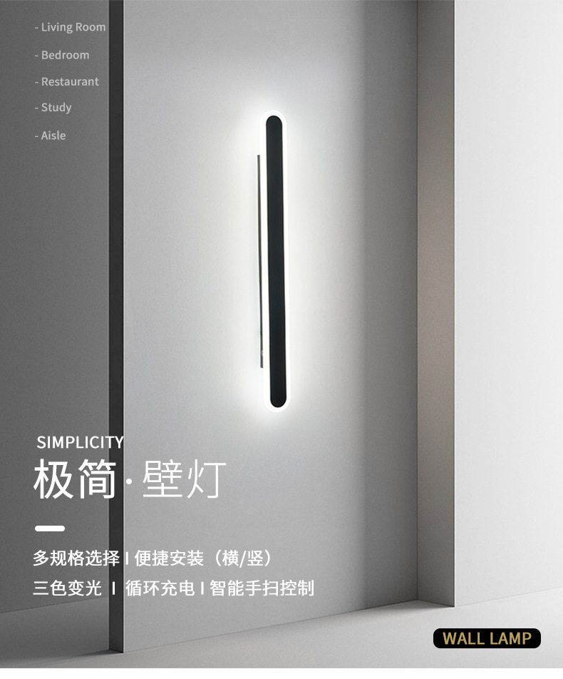 긴 벽 램프 빛 럭셔리 침실 침대 옆 램프 라인 램프 현대 간단한 북유럽 미니멀리스트 거실 배경 벽 램프스토어 가기