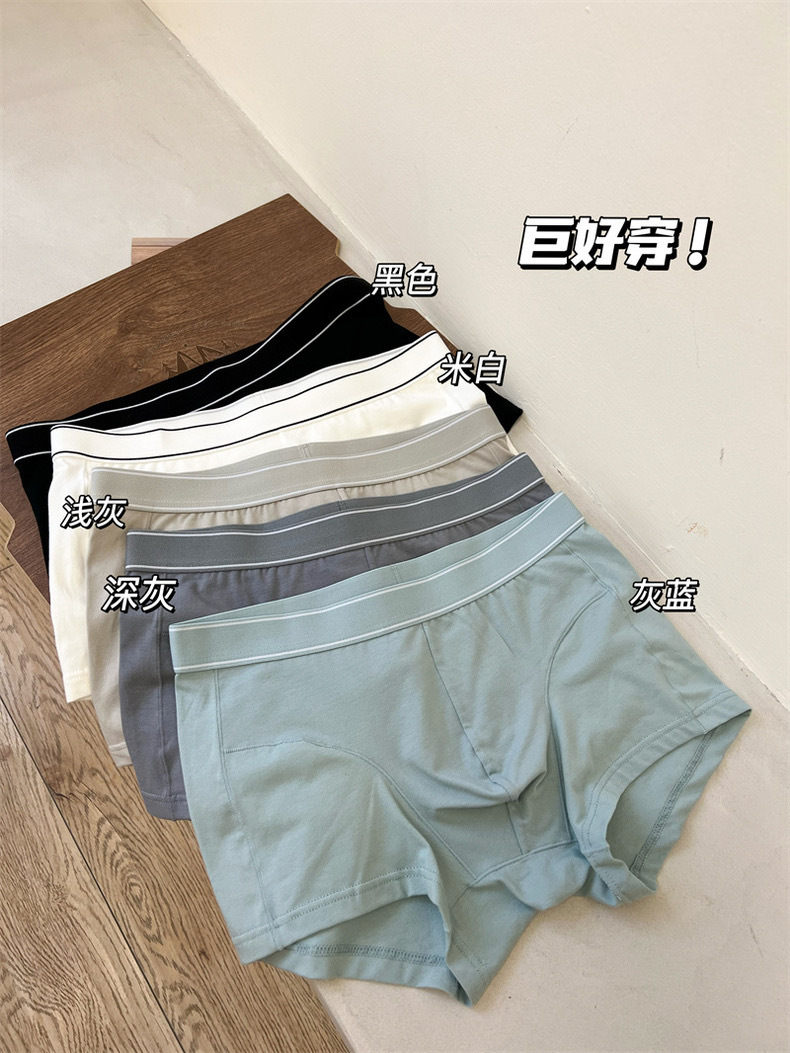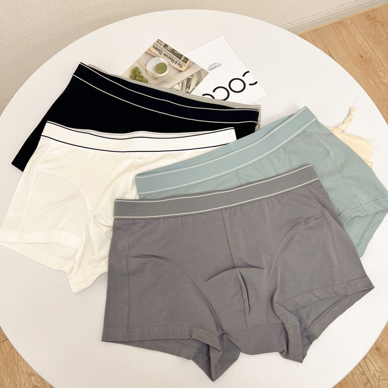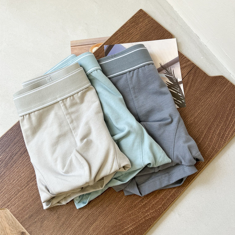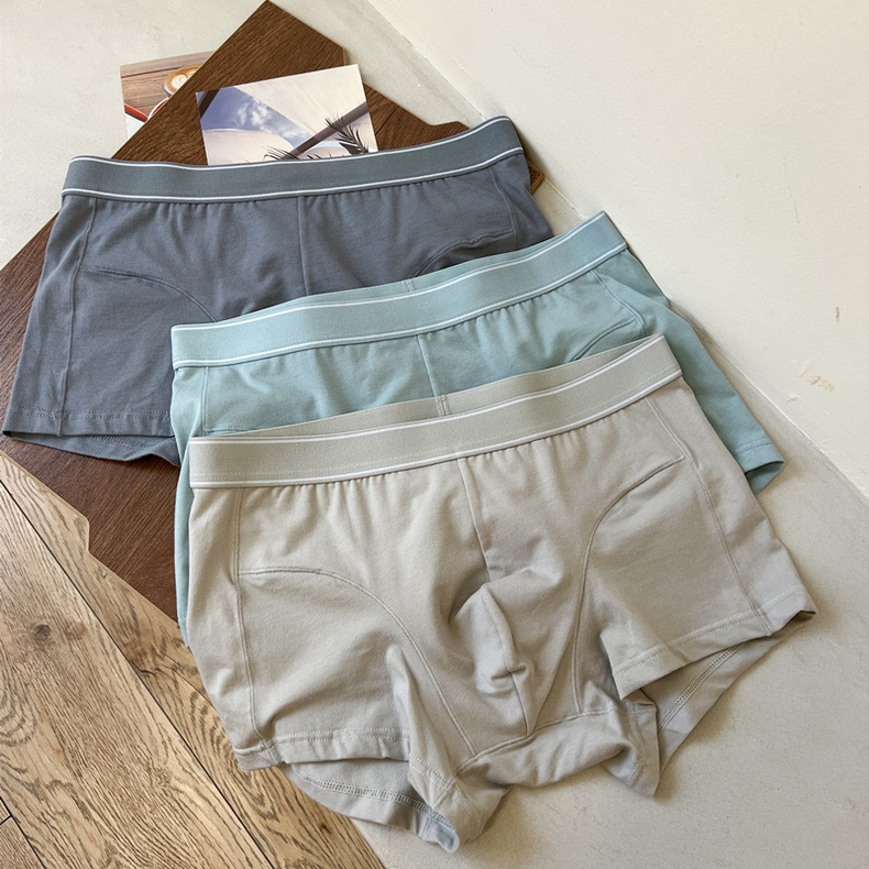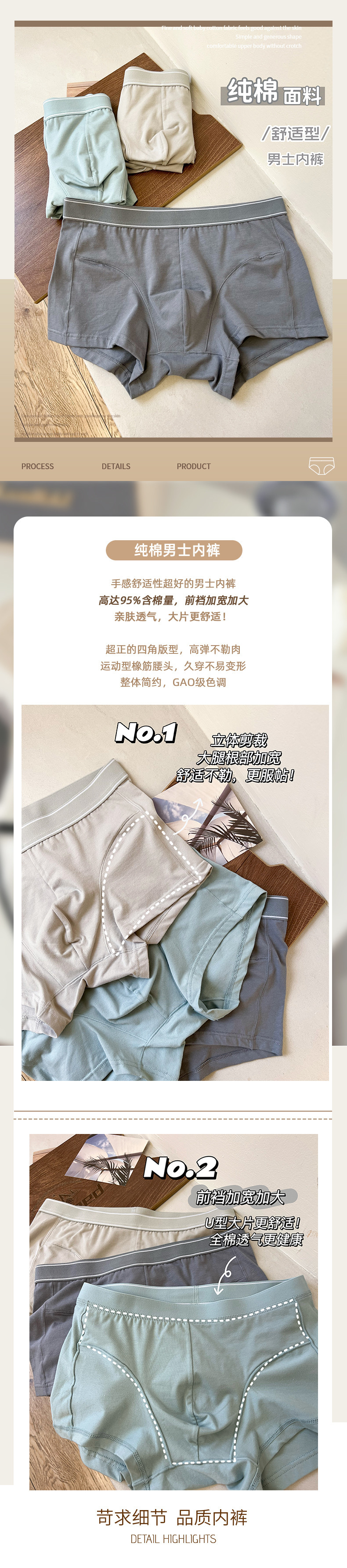 스포츠 순면 속옷 통기성 부드럽고 편안한 남성용 복서 속옷 미드 웨이스트 솔리드 컬러 십대 복서 반바지
